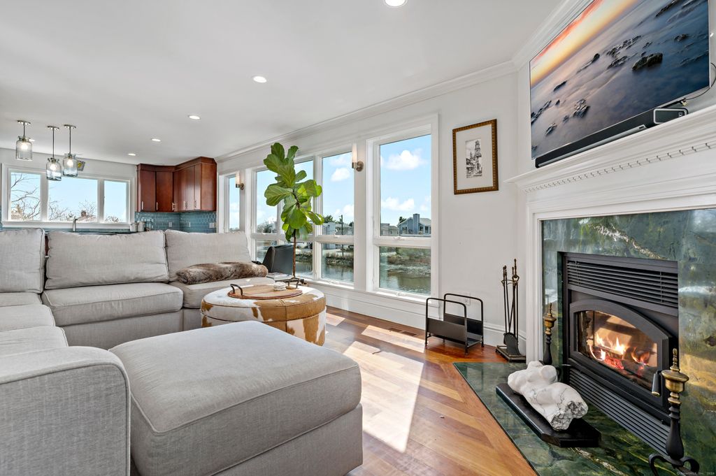 VIEWS, VIEWS, VIEWS....Nestled in the coveted coastal community of Saugatuck Shores, this exceptional contemporary beach house beckons. A true waterfront gem - enveloped by water views and with its own private dock granting access to the Long Island Sound, it is the boater's paradise imagined. The turn-key home has an open interior living plan with walls of windows for a bright, spacious and airy flow to the space. The real highlight however, is its rooftop deck with 360-degree views of the water, stunning sunsets and star-gazing. The expansive deck with lounge, dining and bar areas is an entertainers dream. Stroll to nearby beaches, enjoy paddle-boarding, kayaking, fishing or just lounging in this unique waterfront enclave. Minutes to train, shops, restaurants and all that the cosmopolitan town of Westport has to offer. A very special opportunity to own this fabulous home where one can experience luxury and coastal charm. Ask about proposed renovation plans.