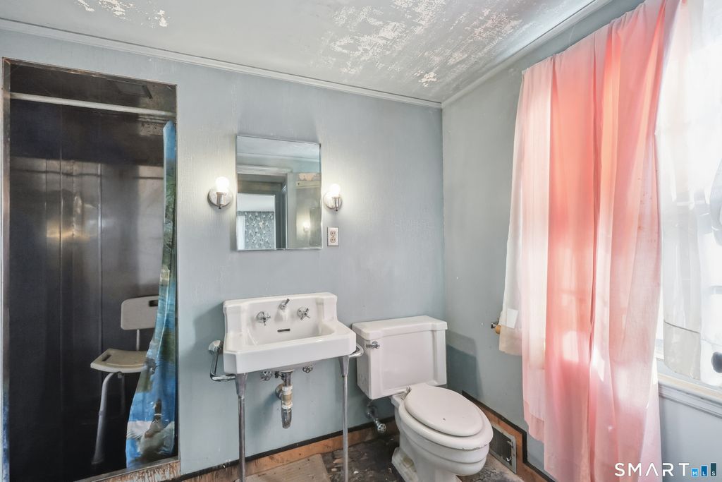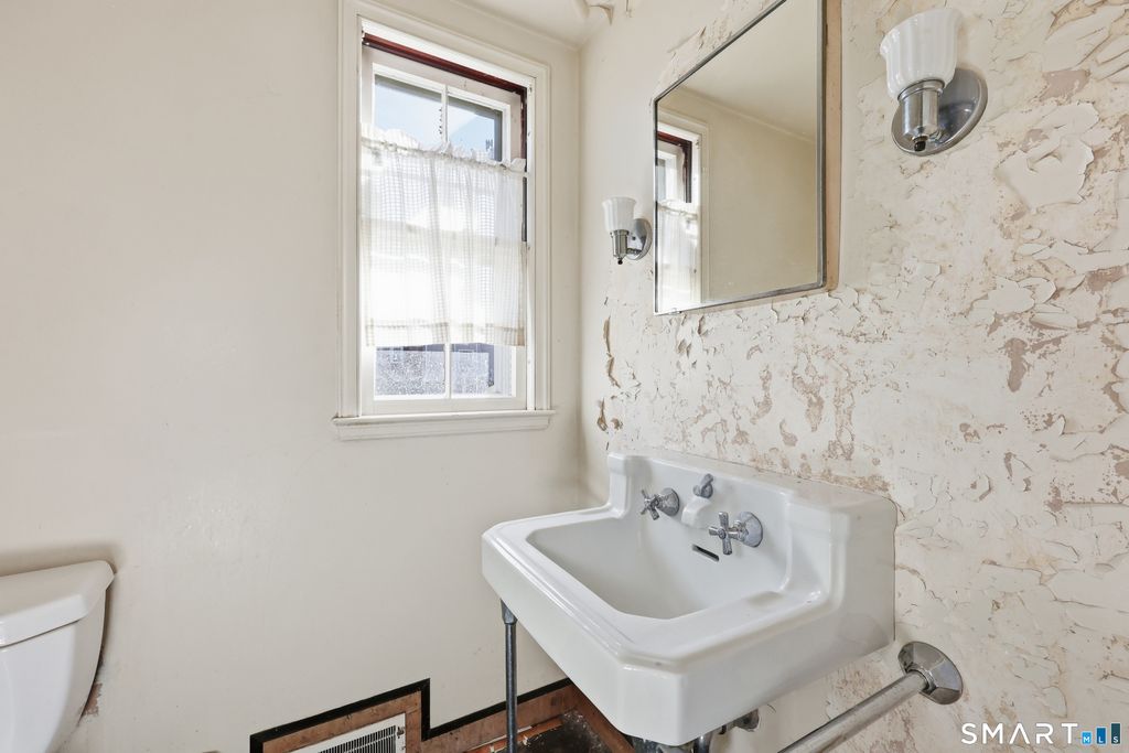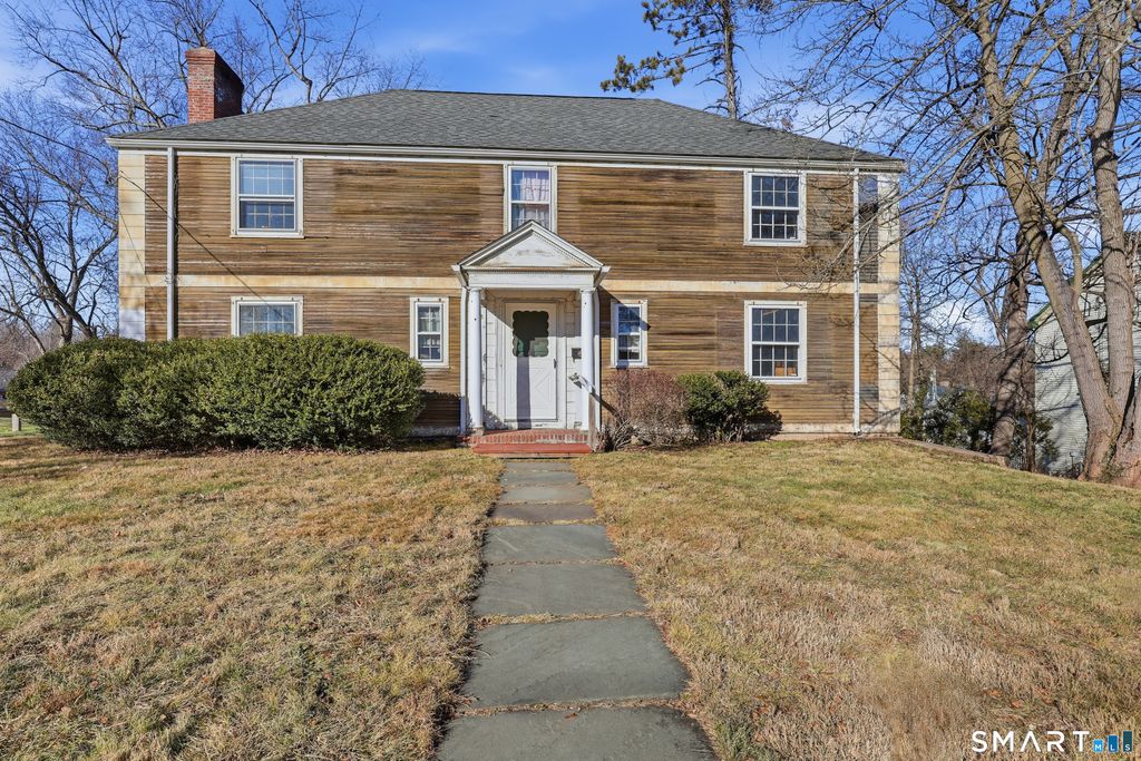 This is a one of a kind architect designed Hip Roof Colonial that has been occupied by the same family since it was built. While the mechanicals are newer and the roof appears good, the Kitchen and Baths are original. Many charming features. Smallish Kitchen abuts additional room (Den/Office) that could be part of a larger remodeled Kitchen. Oak hardwood floors, Primary Bedroom Suite, oversized windows. The gas-fired high efficiency furnace and hot water heater are 6 yrs old. Will not be suitable for FHA or CHFA financing because of numerous areas of peeling paint. Sewer line in street is fully paid for but owners never connected to it. Lateral at front right of property. House to convey in "as is" condition. This is an estate so there are no seller disclosures.