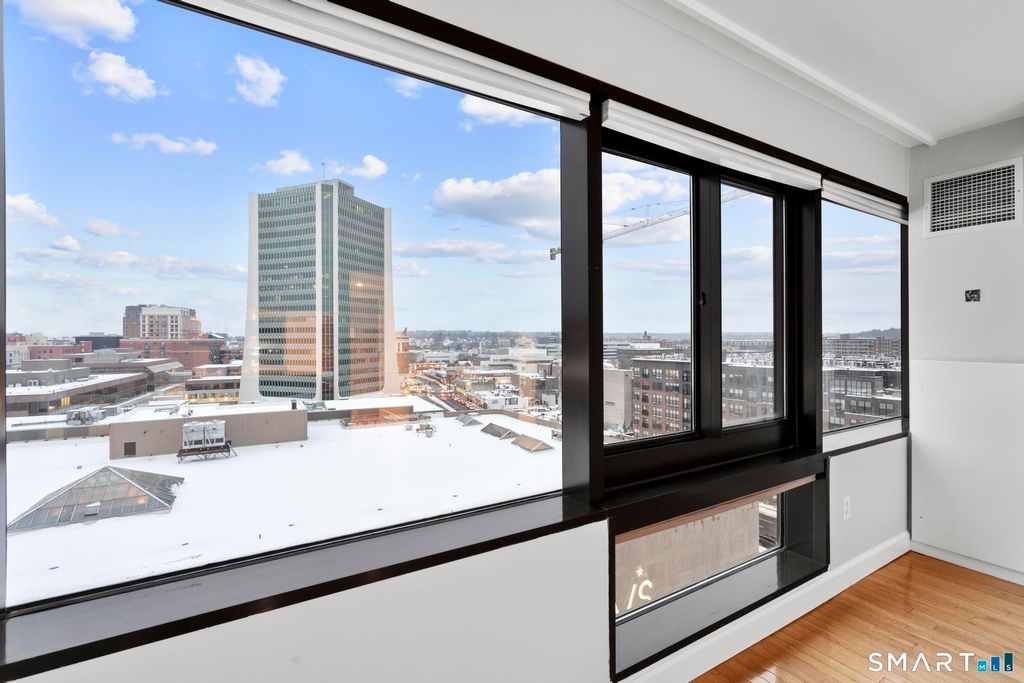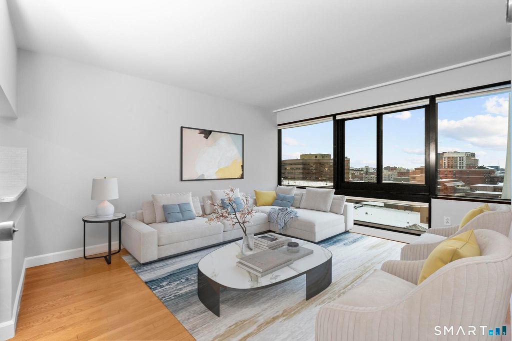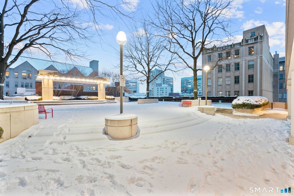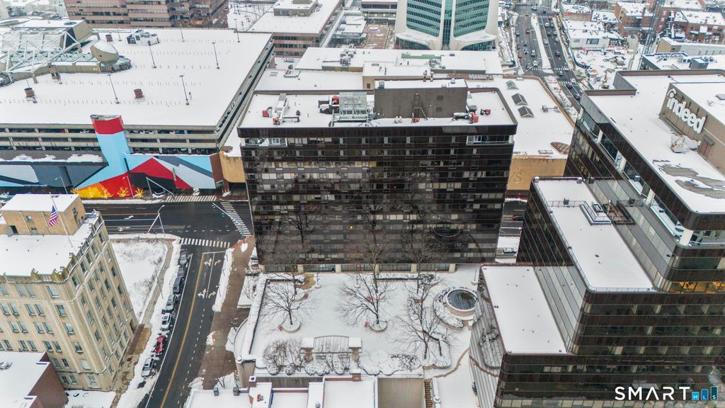 Welcome to this light-filled, beautifully updated condo in the heart of downtown Stamford. Freshly painted throughout, this residence features a crisp white kitchen with quartz countertops and updated stainless steel appliances, offering a modern and functional space for everyday living. The oversized bedroom is complemented by a full bath and a generous custom walk-in closet. Enjoy sweeping city views and stunning sunset vistas from this high-floor unit. The building offers exceptional amenities including 24-hour concierge service, a state-of-the-art fitness center, community room, expansive outdoor courtyard, dog park, and a convenient shuttle to Metro-North-making it ideal for commuters. Indoor garage parking is available for $106/month, along with a private storage unit located on the third floor. Pet-friendly and perfectly situated just steps from downtown dining, shopping, and entertainment.