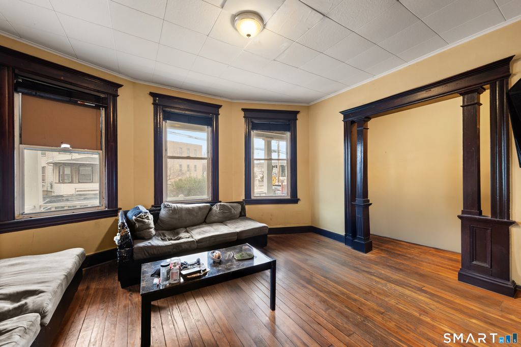 Turnkey three-family ideal for investors or owner-occupants. Each unit includes a kitchen, living room, dining room, bedroom, pantry, and hardwood floors. A separate oversized income producing 3-car garage with electric and a newer roof (1 year old) is currently leased and generates immediate additional income. The second-floor unit has been fully renovated-freshly painted with refinished hardwood floors, refurbished cabinets, brand-new stove and refrigerator, and a completely updated bathroom. Strong rental history. Perfectly located near schools, shopping, public transportation, Metro-North, and convenient access to I-95 and Routes 25/8.