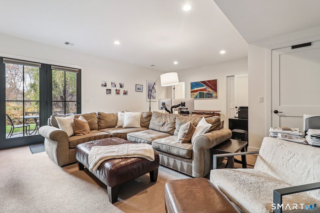 Welcome to Village at Southport, a 16-home gated enclave of luxurious, turn-key homes right in "The Village." Pure easy living in this 3800+ square foot, three level townhome with every amenity desired. Just a few minutes to the gorgeous beach & harbor, library, restaurants & shops, ideally located close to commute & downtown living, yet quiet & private. This end unit is ideally set abutting the 6-acres of open space, with a secluded backyard amidst the 11-acre property. Enter the main level to a versatile space that can be utilized as an office, great room, bedroom, flex space with a full bathroom, outdoor patio access & mudroom, with entry to the 2-car garage. On the main level, enjoy an open concept, with a gas-fireplaced living room with beautiful built-ins & coffered ceilings, a sizable dining room open to the high-end kitchen & oversized Quartz island with seating. The bright, white kitchen features a Sub-Zero & Viking with dishwasher, microwave & pantry with access to the back deck, half-bath & private office. The upper level boasts an enviable primary suite with huge walk-in closet & lavish en-suite bath with walk-in shower & double sinks topped with Quartz. The laundry room features storage, hanging racks & a sink for convenience. Completing this level is a Jack-and-Jill bathroom connecting two guest rooms, both with walk-in closets. Elevator ready! Just think of how lovely of a way of life, enjoying one of the most desirable & beautiful spots in Fairfield County.