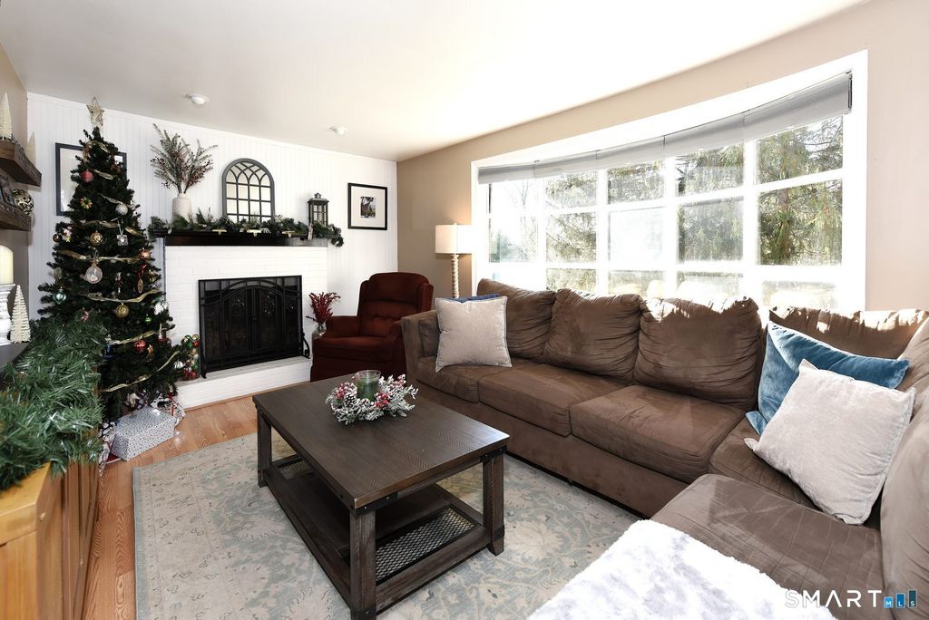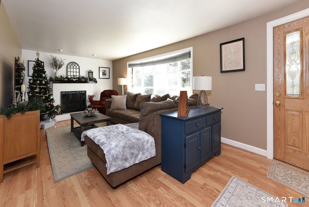 One floor living at its best especially in this price range and condition. This 3 Bedroom 1,440 sq ft ranch set in a desirable, scenic neighborhood offering flexible living. The spacious living room features a fireplace and bay window, creating a bright and welcoming space. A large eat-in kitchen offers ample room for everyday dining and entertaining. Three comfortable bedrooms feature hardwood floors and generous natural light. A finished, heated bonus room provides exceptional versatility and may serve as a family room, dining area, or study with hardwood floors, a bay window, and sliders opening to a spacious raised deck-ideal for relaxing or hosting guests. Enjoy a peaceful residential setting with easy access to shopping, dining, schools, parks, and major commuter routes. A walk-out basement and expanded driveway add everyday convenience, while the outdoor space offers both privacy and usability. A well-balanced home combining space, flexibility, and a location that makes daily living easy.