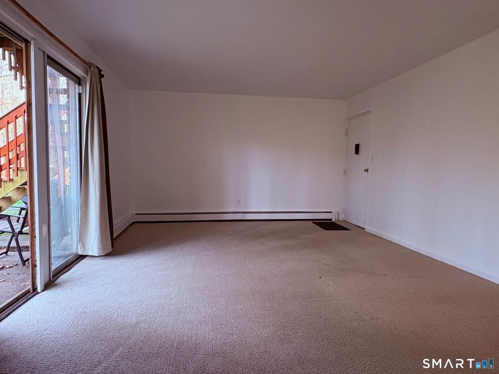 Welcome to Unit 1C at Bayberry Knoll, a well-maintained studio apartment offering comfortable, efficient living in a desirable Cheshire location. This freshly painted unit features an open-concept layout that accommodates both a living and dining area, with ample space for a queen-sized bed. The kitchen offers ample cabinetry and the spacious bathroom includes a large, deep closet. Add the hallway closet, and you'll find plenty of storage in the unit - the key to a well-functioning studio apartment. The main living space is centered around full-sized sliding glass doors opening to your private patio, with a view of the peaceful woods at the rear of the complex. This is an ideal setting for quiet and serenity. Additional conveniences include a laundry room steps from the unit, a locking storage cage, and unassigned off-street parking. Bayberry Knoll is known for its professional management and tranquil residential atmosphere. Conveniently located near Route 10 and Route 68, with easy access to Hamden, Wallingford, and New Haven, this studio is perfect for commuters or anyone seeking low-maintenance living in a well-kept Cheshire community close to shopping, dining, and major highways.