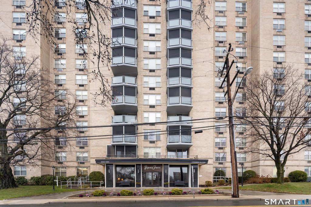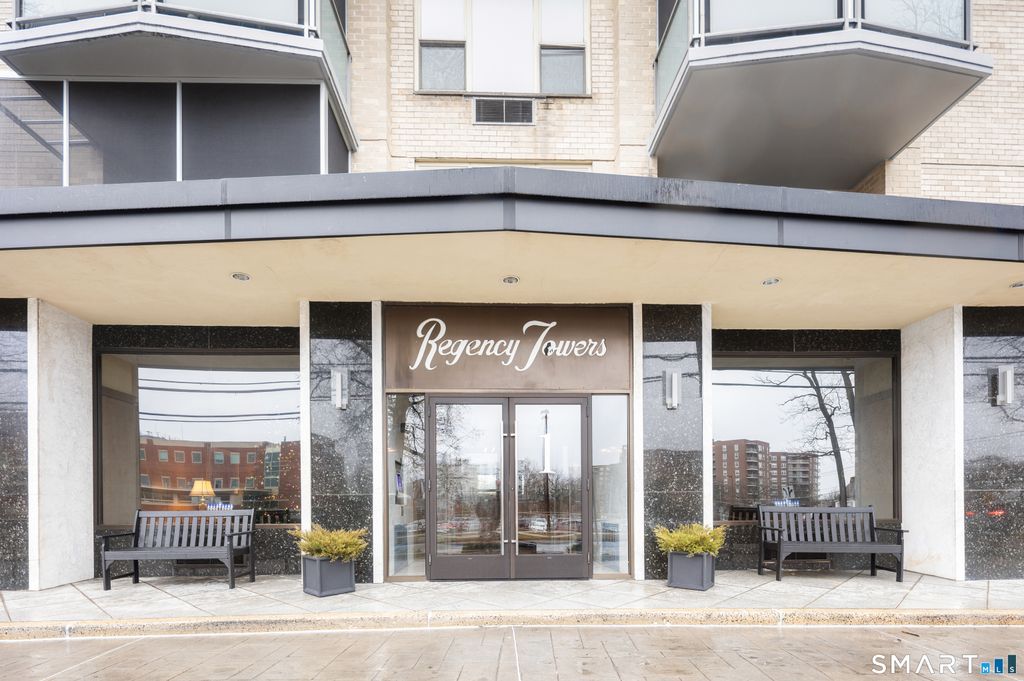 Very spacious 2-bedroom/ 2-full bathroom, 1324 sqft corner unit at the popular Regency Towers on Strawberry Hill. Southwestern views provide bright light through some-dozen large windows, bathing the wonderfully open floor plan home in sunny, natural light. Enormous living room frames the private balcony, providing outdoor dining/relaxation, city views and spectacular sunsets. Large, formal Dining Room off Kitchen w/ newer appliances. Oversized Primary Bedroom Suite offers a full wall of closet-space & a private bath w/ walk-in shower. Large Second Bedroom features a walk-in closet & is just 2-steps to the second Full Bath w/ tub/shower. Back-in-style parquet floors highlight the home plus an abundance of large closets, 6 in total, provide plenty of storage. Semi-private laundry is just steps down the hall and secure, covered parking (1 deeded spot) is included. Monthly HOA fee includes Heat, Water, Cooking Gas, Hot Water & more! You only pay electric ($45/ mo per owners). Building Amenities: Around-the-clock doorman service, live-in superintendent, modernized security monitoring throughout the building, impressive front lobby, ample visitor parking. Priced to sell, allowing buyer to update as they see fit. Set atop Strawberry Hill and located a couple minute drive to all that Downtown Stamford has to offer (fabulous restaurants, entertainment, shopping, library, parks) plus close to train, hospitals, beaches & I95, the welcoming community of Regency Towers awaits.