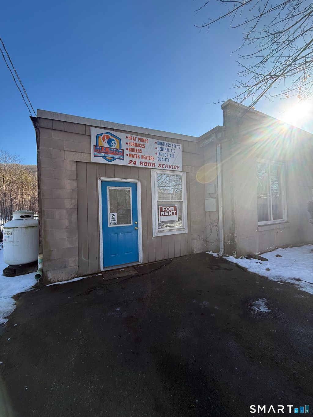 LOCATION, LOCATION, LOCATION!! This versatile commercial lease at 59 Old Turnpike offers an excellent opportunity for business owners seeking visibility, accessibility, and functionality. The space has been recently painted inside and features three total rooms, ideal for office, showroom, or storage use. A half bathroom adds convenience for staff and clients. The property includes four off-street parking spaces, a garage door for easy loading and unloading, and propane heaters for year-round comfort. An LED sign is in place and ready to showcase your business, providing excellent exposure to passing traffic. The layout is well suited for a variety of uses, including plumbing, electrical, detailing, printing, or other service-based businesses. Enjoy strong public visibility with easy access off Route 42, quick on-and-off access to Route 8, and close proximity to Route 67. Come grow your business-or bring your vision to life-in the welcoming town of Beacon Falls.