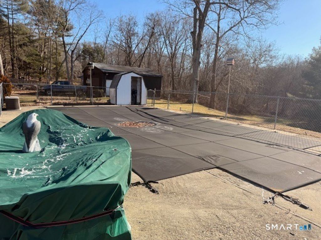 Nestled on 2.77 acres along streams and brooks from the picturesque Shunock River, this unique two-story ranch offers a perfect blend of charm and functionality. Finished lower level makes it 1456 sf of living space. Featuring hardwood floors, a striking spiral staircase, and a screened porch off the living room. Enjoy an in-ground pool, a dumbwaiter for easy grocery transport, and peace of mind with a generator. The property includes a two-car garage under the house plus a heated detached garage for 2+ vehicles, two wells-one for the home and another for yard spigots-and a fenced area ideal for pets or play area. Recent updates include a new septic tank, pool pump, well pump and split systems. With riverfront views, ample outdoor space, and thoughtful amenities, this well-cared-for home is a rare find for those seeking privacy and convenience