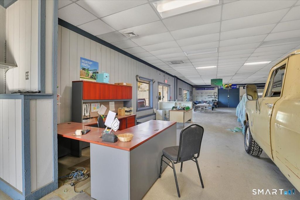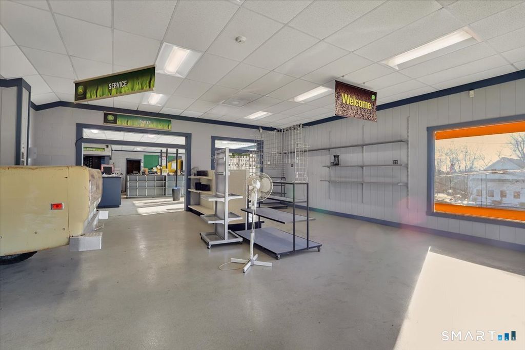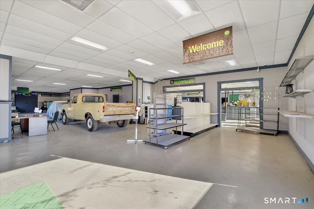 Located on 2.62 acres in the heart of Colchester's town center, this highly visible commercial lease opportunity offers outstanding access to Routes 2 and 11 and exceptional flexibility for a wide range of business uses. Currently operating as a small engine repair shop, the property features approximately 16,350 square feet of total building space, anchored by a 9,600 square foot main building that includes approximately 3,450 square feet of retail/office space and a 6,150 square foot service and production garage. Additional improvements include a 2-bay storage building totaling approximately 2,752 square feet, a 7-bay garage offering approximately 4,000 square feet, a loading dock, and expansive open yard area ideal for outdoor storage, fleet parking, or equipment staging. With excellent visibility, ample parking, and generous land area, this property is well suited for contractors, small engine repair, or service-related businesses, warehouse and distribution operations, trades, or light industrial uses, subject to zoning approvals. This is a rare opportunity to lease a substantial commercial facility in a prime Colchester location with strong traffic exposure and long-term growth potential.