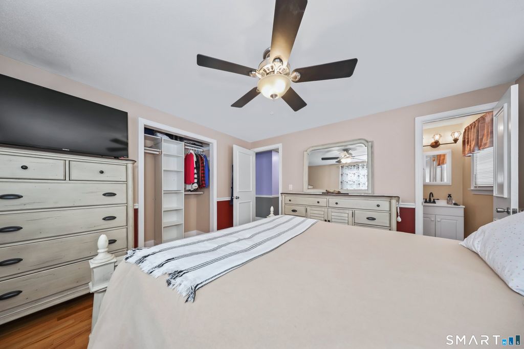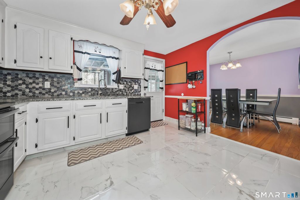 Welcome to this well-maintained three-bedroom raised ranch located in a desirable Southington neighborhood. Set on a level, fully fenced yard, this home offers the perfect blend of space, functionality, and comfort. The main level features hardwood floors throughout, a bright living area with a wood-burning fireplace, and a dining room with French doors leading to a sun-filled four-season sunroom-an ideal spot to relax and enjoy natural light year-round. The kitchen is finished with granite countertops and newer tile flooring, while ceiling fans throughout the home add comfort in every season. The primary bedroom includes its own half bath, with an additional full bath on the main level. The fully finished lower level expands the living space with a second wood-burning fireplace, a kitchen, half bath, and laundry room, offering excellent in-law or multi-generational living potential. Outside, enjoy two decks-one off the main house and another behind the oversized two-car detached garage-perfect for entertaining. The backyard also features a fire pit, creating a great outdoor gathering space. Additional highlights include solar panels, ample storage, and a location within walking distance to parks and schools, with easy access to restaurants, shopping, and major highways. This home checks all the boxes for space, flexibility, and location-don't miss it.
