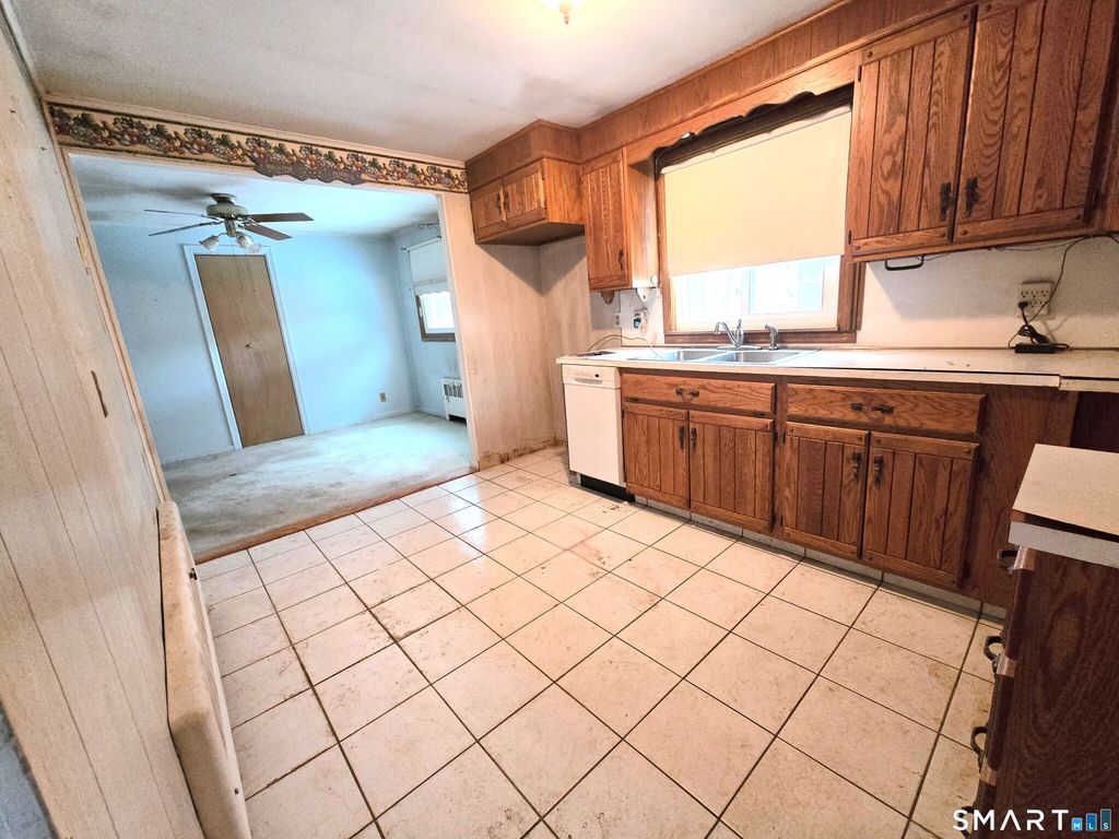 Just listed-estate property offering a fantastic opportunity in a desirable East Side Meriden neighborhood. This 2-bedroom, 1-bath ranch is definitely a diamond in the rough and will require significant cosmetic renovation, but the upside is undeniable. Set on a .25-acre lot with a detached 2-car garage and a welcoming, oversized front porch, this home offers strong bones and endless potential. The layout includes a large, finished basement that adds valuable additional living space once restored. With improvements, this property could truly shine as a fantastic starter home, downsizer, or condo alternative. Newer windows and solar panels add to the home's overall efficiency. Ideal for investors, flippers, or owner-occupied buyers willing to put in sweat equity to build value in a great location. This one-owner home is ready for its next owner to bring their creativity and make it shine again! Property to be sold strictly as-is.