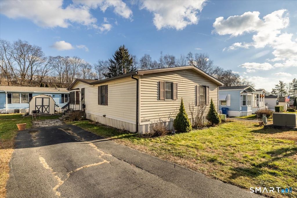 Well maintained 2 bedroom, 1.5 bath mobile home located in the desirable Woodland Park community in Shelton, CT. This home offers a functionality layout with generous living space, abundant natural light, and comfortable room sizes throughout. The main living area flows into the dining space and kitchen, providing an easy everyday living experience. The primary bedroom includes a full bath, while the second bedroom has a 1/2 bath and offers fexibility for guests, home office space, or additional living needs. The home provides storage, laundry area, and a practical floor plan ready for personal touches. Woodland Park offers a small dog park for residents. This is a land-lease community with park approval required for all adult occupants afer contract acceptance. Monthly lease apply and are set by park management. Must meet park requirements, including credit, income, and background review. Pets may be allowed with restrictions. Conveniently located close to shopping, dining, major routes, and all Shelton has to offer. A great opportunity for affordable homeownership in a well established community.