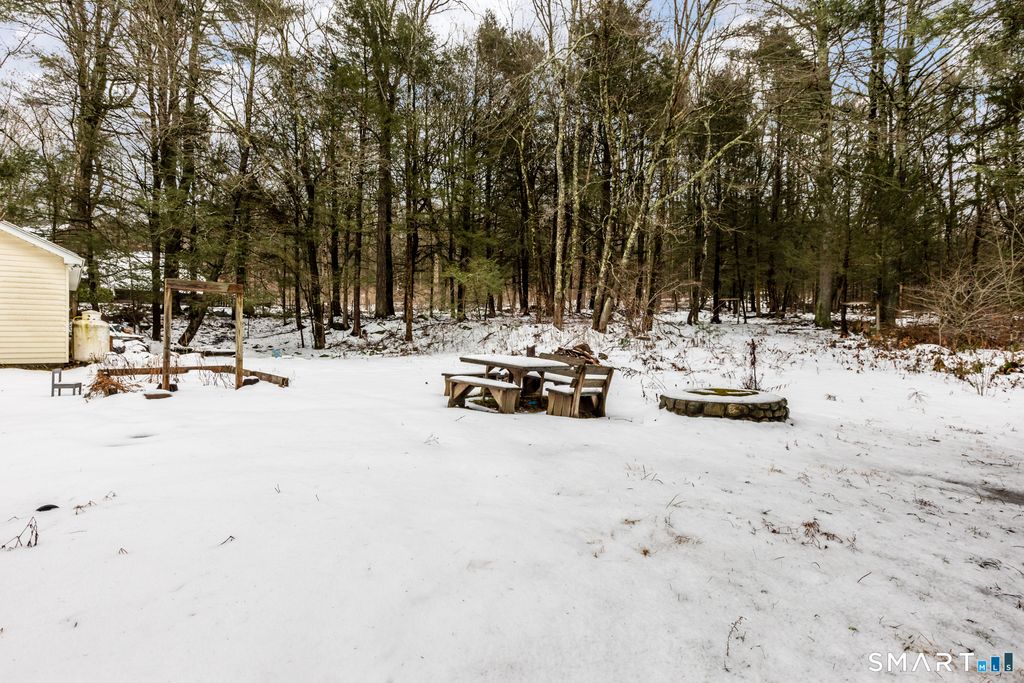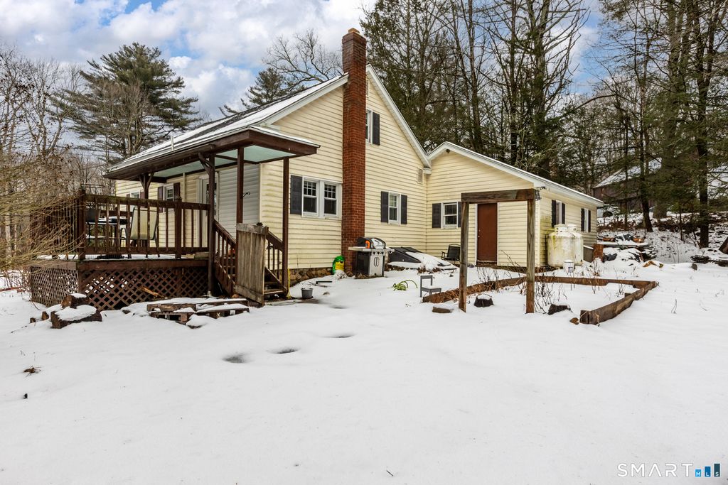 Cozy 864 sq. ft. Cape with tons of potential. Situated on 2.4 acres this home includes an enclosed front porch, hardwood floors, some fresh paint and close proximity to I-84. The front porch leads to the home's main entrance and includes a hardwood floor Living room with adjacent alcove along with a recently updated full bath. The alcove area leads to a Dining area with built-ins and more hardwood. The Kitchen occupies the rear of the first floor and includes garage and side deck access, composite flooring, an eat-in space and views to the private backyard. The second level includes hardwood floors along with 2, half dormered bedrooms. The grounds include an elevated side deck, a level backyard with firepit and assorted planting / gardening areas. 2-car garage. Propane.