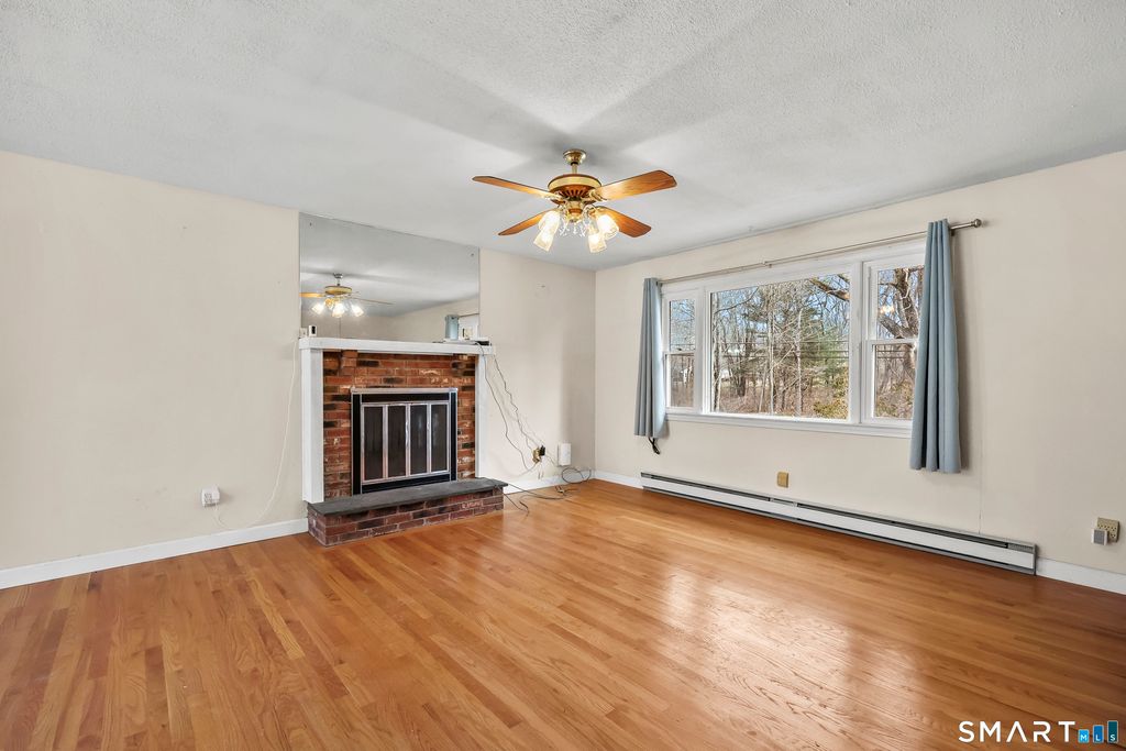 Rural Surroundings with Commuter friendly access to CT RT 2 to Hartford and Norwich/New London Areas offered with this oversized 56' x 28' Bilevel Design home featuring a legitimate four bedroom floor plan on the 1568 SF main living level and being offered with an abutting 2 acre "lot of record" to yield a 4 acre homesite. Open floor plan design Kitchen, Dining Room, and Living Room appointed with hardwood floors, masonry fireplaced Living Room, OH ceiling fan/light, and sliders to 14''x 20' private rear deck. Roomy kitchen with loads of working counter space, peninsula cabinets/serving counter, and work desk area! Four main level bedrooms include Primary BR with full shower stall bath, w/w carpeting, OH ceiling fan/light, and two closets! Three additional Bedrooms with w/w carpeting, 2 with OH fan/lights. All sharing a center hallway full tub/shower bathroom! Lower level offer 390 SF finished 19.6"x 25.4" family room appointed with a raised hearth fieldstone fireplace with wood burning stove insert and an adjoining 1/2 bath! Lower level also has spacious laundry-utility-storage room and 2 car under garage bays! This home needs some updating and is priced with consideration of the cost of improvements to make this country jewel sparkle!