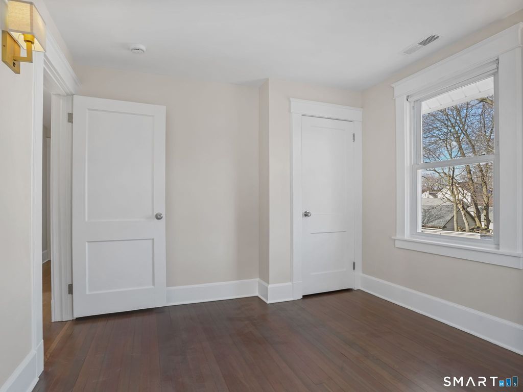 Fully renovated mid-city Colonial offering nearly 2,500 square feet of well-designed, move-in-ready living space. This 4-bedroom, 3.5-bath home features a new kitchen and baths, new windows, and new HVAC. A foyer opens to a living room with fireplace, dining room, and flexible office/den. The bright kitchen includes quartz countertops, new cabinetry and appliances, and a breakfast nook. The second floor offers a spacious primary suite with walk-in closet and bath, plus two additional bedrooms. The upper level provides additional space with a full bath, ideal for a bedroom, guest suite, or playroom. A dry, full basement with epoxy flooring adds clean storage and utility space. Outside, enjoy a level yard, expansive deck, detached garage, and ample off-street parking. Walk to Metro-North, downtown Stamford, dining, shopping and Stamford Hospital.