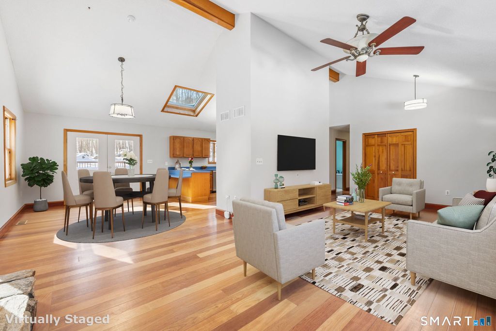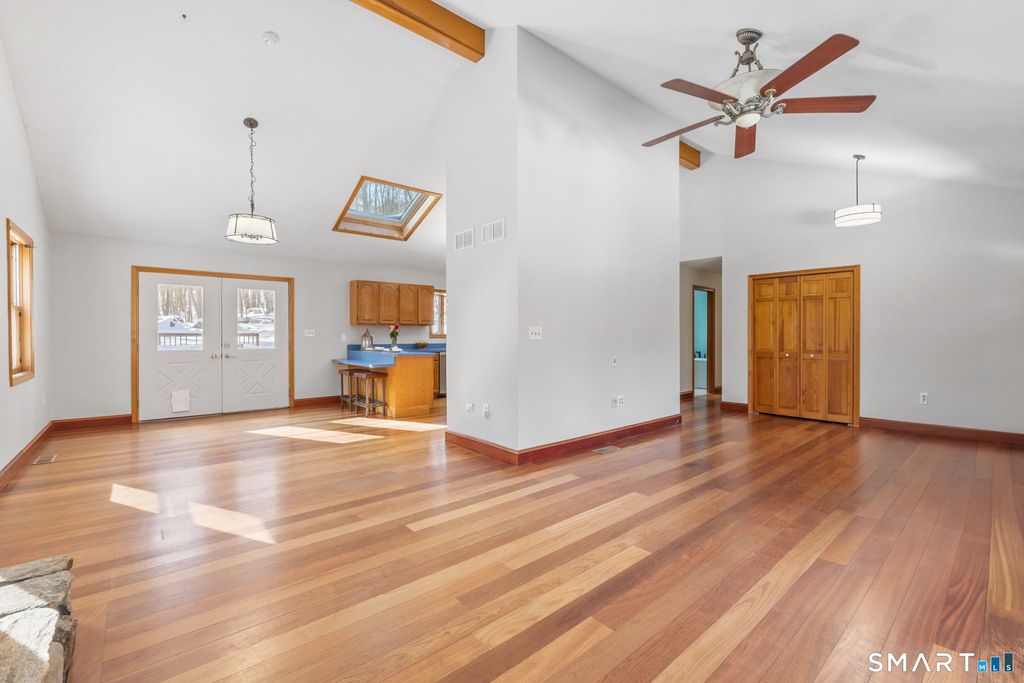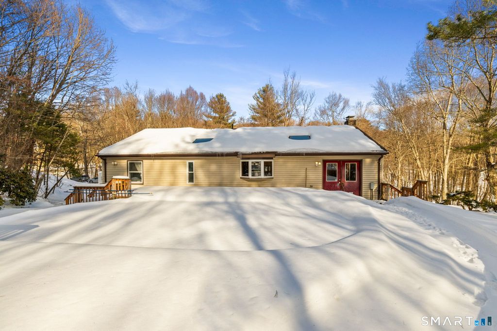 If you've been dreaming of a peaceful, private retreat surrounded by nature, this exceptional 3.53-acre property delivers. With the scenic Skungamaug River flowing along the front of the property, two established campsites (both with firepits and one with electricity), and 200 acres of conservation land surrounding you, this is a rare opportunity to own your own outdoor oasis. Just steps away, enjoy hiking and exploring at Palmer Kendall Mountain Conservation Area. This inviting 2 bedroom, 2 full bath ranch-style home offers an open-concept layout with cathedral ceilings in the dining and living areas, creating an airy and welcoming feel. Stunning cherry H/W floors and a striking stone FP anchor the main living space, while a bay window in the spacious kitchen frames serene backyard views. The recently remodeled full bath is a true retreat, featuring a vaulted ceiling with a skylight, a beautifully tiled walk-in shower with glass doors, and a luxurious jetted tub designed for relaxation. The freshly painted primary bedroom includes new carpeting, and the 2nd bedroom has been thoughtfully divided to create an additional office space-easily converted back to one large bedroom if desired.The finished lower level provides flexible living space ideal for a home gym, playroom, or additional FR, along with the 2nd f/bath. A rare blend of privacy & outdoor adventure, this is a must see property for nature lovers and anyone seeking tranquility without sacrificing modern conveniences.