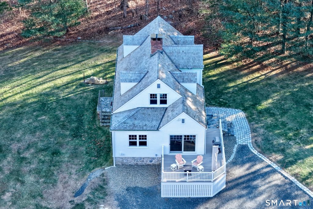 Tucked along a country lane, this exquisite cape style home was built from a classic Better Homes & Gardens plan. It offers timeless character & craftsmanship. Pull up & fall in love with the charm of the crescent moon shutters & newly shingled cedar roof. Step inside the foyer & feel the warmth of this home. The spacious living room with hardwood floors & pretty fireplace greets you. The kitchen has gorgeous custom inset door cabinetry & stainless appliances. It opens directly to the dining room which looks out to the wrap-around composite deck overlooking the private property. There are 2 bedrooms on the main level of this home and a full bath. Walking upstairs you will see the exposed brick leading to 2 sunlit oversized bedrooms & full bath. The lower level has laundry and storage, but also a fireplace which lends itself to future finishing. The outdoor space is a perfect oasis and features the deck, patio and firepit area. The beautifully tended gardens give year-round interest and include a wildflower area as well as pollinator garden. Meander the walking paths through wooded areas bordered by stone walls. A 2-story 20x30 post & beam barn/workshop is a showstopper and perfect for a hobbyist, woodworker, contractor or car storage. Located in tranquil Easton, this home has the feel of a weekend getaway, yet convenient to Fairfield, Westport & NYC. Enjoy the beauty of New England every season of the year in this meticulously maintained home.