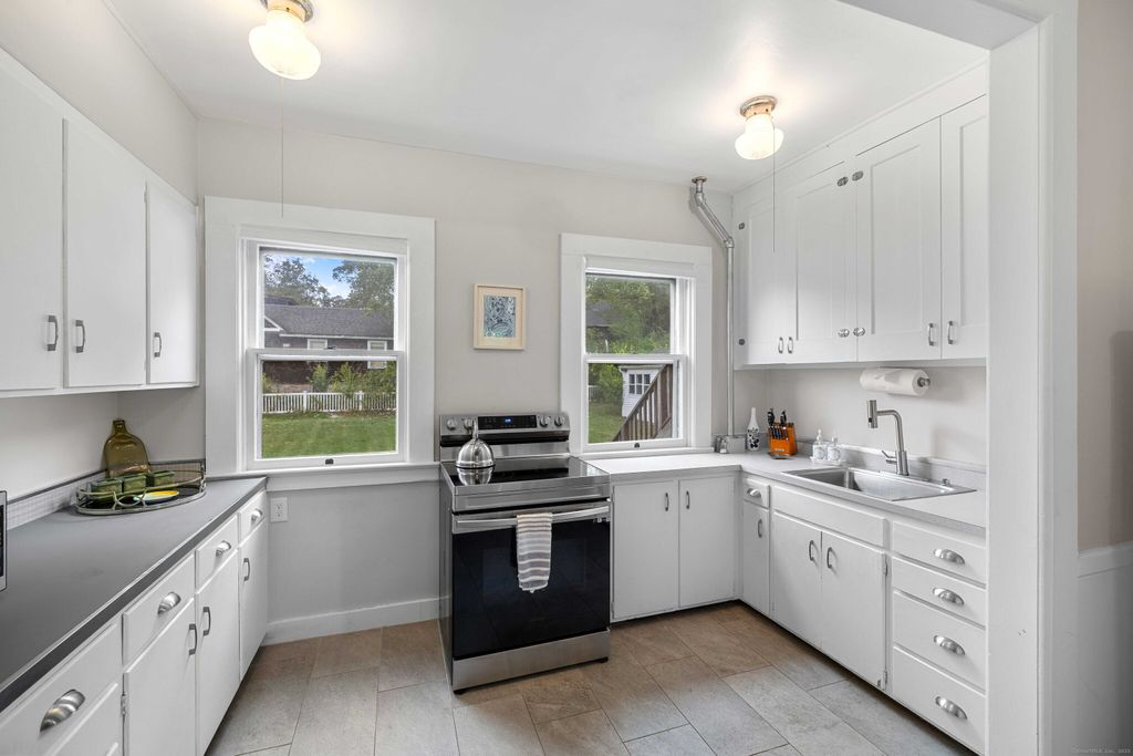 Charming Victorian home offers timeless appeal and spacious living on over half an acre of land. Located in the coastal seaside village of Noank, this home enjoys a serene New England setting known for its maritime heritage and scenic beauty. With 2,063 sf, this lovely home features 3 bedrooms and 2 full baths. A covered front porch welcomes you into a warm interior that includes an adorable kitchen with ample white cabinetry and outdoor access, a formal dining room perfect for hosting, both living and family rooms offering versatile spaces for unwinding or gathering, and a full bath. The upper level has the potential for two kitchens. It includes 3 comfortable bedrooms, a full bath, and a large laundry room with direct access to a balcony that leads to the expansive backyard. Beautiful hardwood flooring and solid wood doors add character and elegance throughout most of the home. Additional highlights include a walk-up, partially finished attic offering extra space or storage, a full basement with potential for customization, and a detached 2-car garage and shed for additional storage. Residents are minutes from the local marinas, and the quaint shops and eateries of Noank Village. With nearby access to Esker Point Beach, Haley Farm State Park, and the vibrant attractions of downtown Mystic just a short drive away, this property offers the perfect blend of small-town tranquility and coastal New England lifestyle.