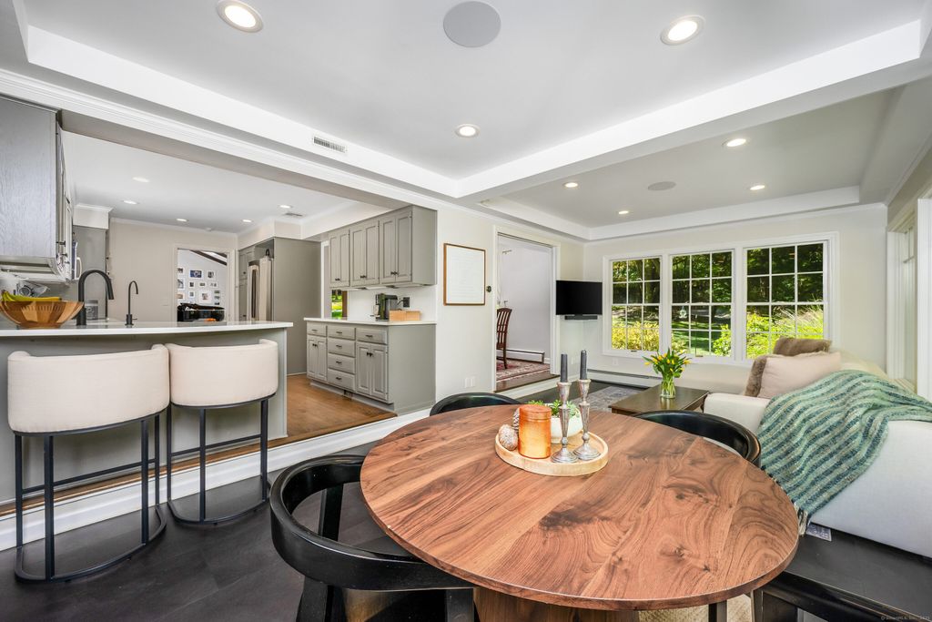Move-in ready and thoughtfully updated, this beautifully maintained residence delivers the turnkey condition today's buyers are seeking. Renovations completed within the past 20 months include a refreshed kitchen with quartz countertops, stylish backsplash, and freshly painted cabinetry, along with remodeled hall and half baths. Refinished hardwood floors span the main living areas and bedrooms, complemented by new luxury vinyl flooring in the sunroom, foyer, and lower level. Set on 1.97 acres, the outdoor spaces are ideal for entertaining and everyday enjoyment, featuring an expansive deck, bluestone patio, and a new stock tank pool. Vaulted ceilings, oversized windows, and two white stone fireplaces create light-filled, inviting living spaces. A walk-out lower level offers an above-grade office or bedroom-perfect for guests or remote work. With a freshly paved driveway and meticulous upkeep throughout, this home presents a rare opportunity for buyers seeking condition, comfort, and privacy without compromise. Walkable neighborhood, convenient to Wilton Town Center and Westport Town Center. Several options for NYC commute.
