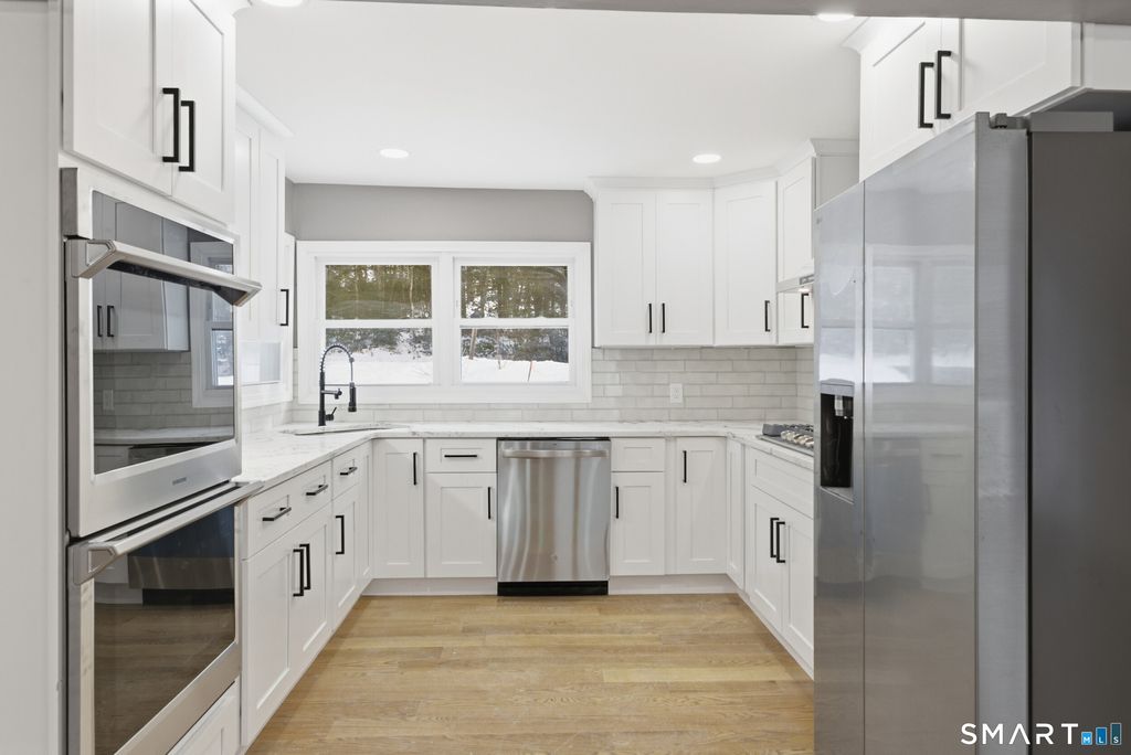 Experience refined living in this exceptionally renovated colonial style home that is tucked away in Harwinton CT. This stunning residence offers 5 generously sized bedrooms and 3 beautifully appointed bathrooms, thoughtfully curated with sleek, modern finishes and high-end design elements throughout. The heart of the home is a designer kitchen that effortlessly blends form and function, featuring custom cabinetry, premium countertops, stainless steel appliances, and sophisticated finishes. The property includes a living room with high ceilings and a wood burning stove that is the perfect spot for entertaining guests or getting cozy on the cold winter nights. Along with a partially finished basement that has been meticulously renovated and has the possibility to be whatever your heart desires. With the perfect blend of privacy along with only being a short drive away from Rt. 8 and the best shopping and entertainment Harwinton has to offer, properties like this don't come around often so don't miss your opportunity while it lasts!
