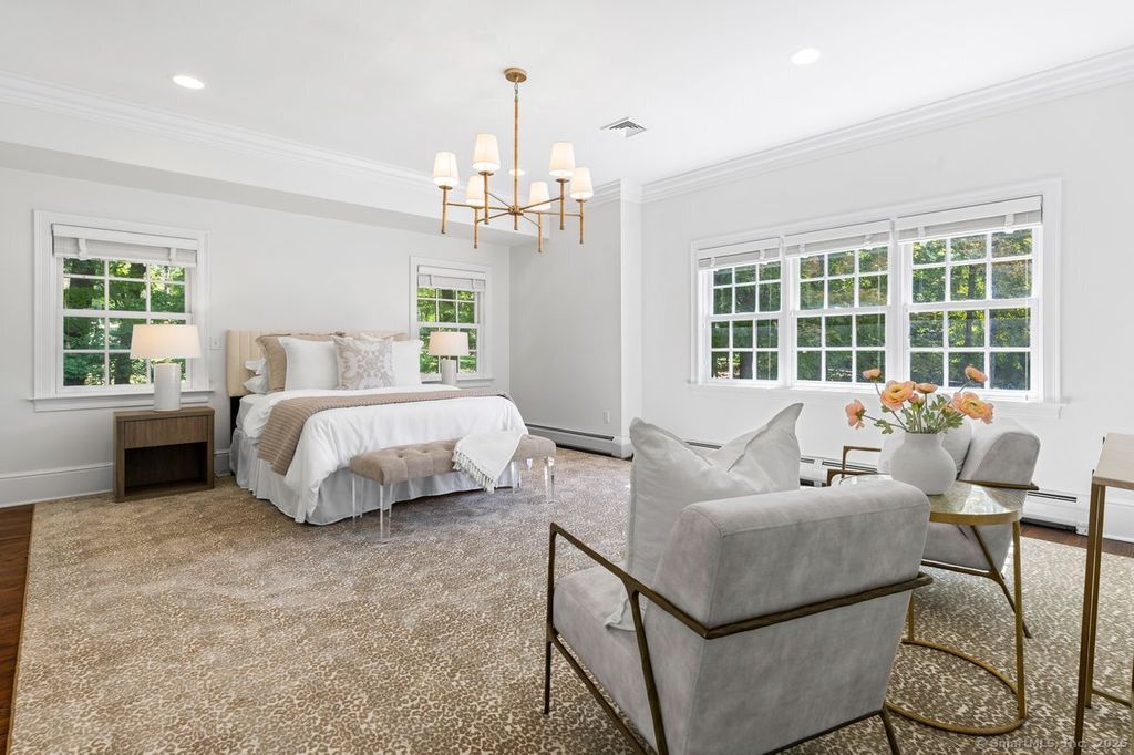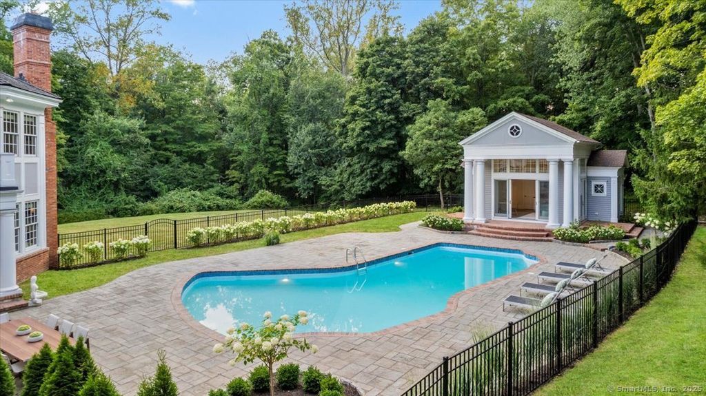 Welcome to 1421 Oenoke Ridge in the picturesque town of New Canaan, CT. A gated entrance and circular drive lead you to this gorgeous home just minutes from New Canaan's vibrant town center. Expertly crafted by Douglas Carter Architects, and stunningly transformed by its current owner/designer, the more than 10,250-square-foot residence, sited on 2.5 pristine acres, offers a luxurious retreat for the most discerning buyer. With four finished levels, the home boasts the finest quality craftsmanship and meticulous attention to detail. The newly updated gourmet kitchen is a chefs dream, and with its high ceilings and abundance of oversized windows, the home is flooded with natural light, seamlessly blending the indoors with the surrounding nature. The primary suite is a sanctuary of its own, featuring dual bathrooms, sitting room, fireplace, and balcony overlooking the pool area. The six bedrooms in the main house are all ensuite, and the finished walk-out lower level includes a movie theater and wine cellar. A separate 700+ sq. ft. pool/guest house (built in 2020), complete with kitchen, bath, and optional bedroom, overlooks the 30x50 lagoon-style pool. Note: Property taxes reflect the town-appraised total market value of $5,378,200.