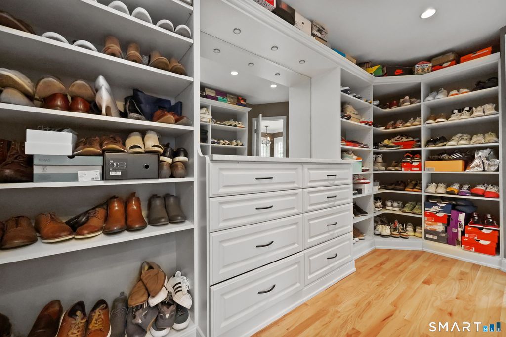 A refined residence set on a premier cul-de-sac within Southbury's highly regarded Fox Hollow neighborhood, offering a rare blend of elegance, privacy, and enduring quality. Thoughtfully designed and impeccably maintained, with many recent updates, this home is admired as both chic and stunning, with rich golden hardwood floors, raised-panel wainscoting, crown mouldings, a stacked-stone fireplace, gourmet chef-quality appliances, granite countertops, oil-rubbed bronze hardware, and high-end lighting throughout. The first floor is beautifully balanced for gracious entertaining and everyday living, featuring a dramatic great room, a home office, formal dining room, upscale kitchen, and a full-service laundry room with additional pantry storage and generous counter space. The first-floor primary suite serves as a peaceful retreat, complete with a spa-like en-suite bath and a sun-filled dressing room with custom built-in cabinetry-an exceptional walk-in closet experience. Upstairs, three spacious en-suite bedrooms offer comfort and privacy. The walkout lower level includes an additional private bedroom alongside a home theater area, with a full bath featuring a tub/shower combination-creating flexible space well suited for guests, extended family, or a variety of lifestyle needs. Set on a private, professionally landscaped 1.41-acre lot with stone walkways, deck, and gazebo. Three-bay garage with main-level access plus an additional rear bay for workshop or storage.