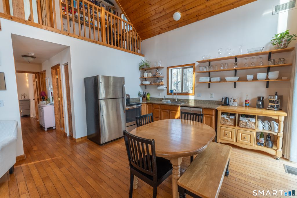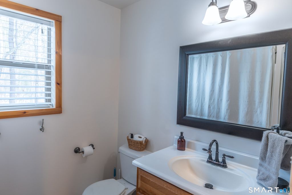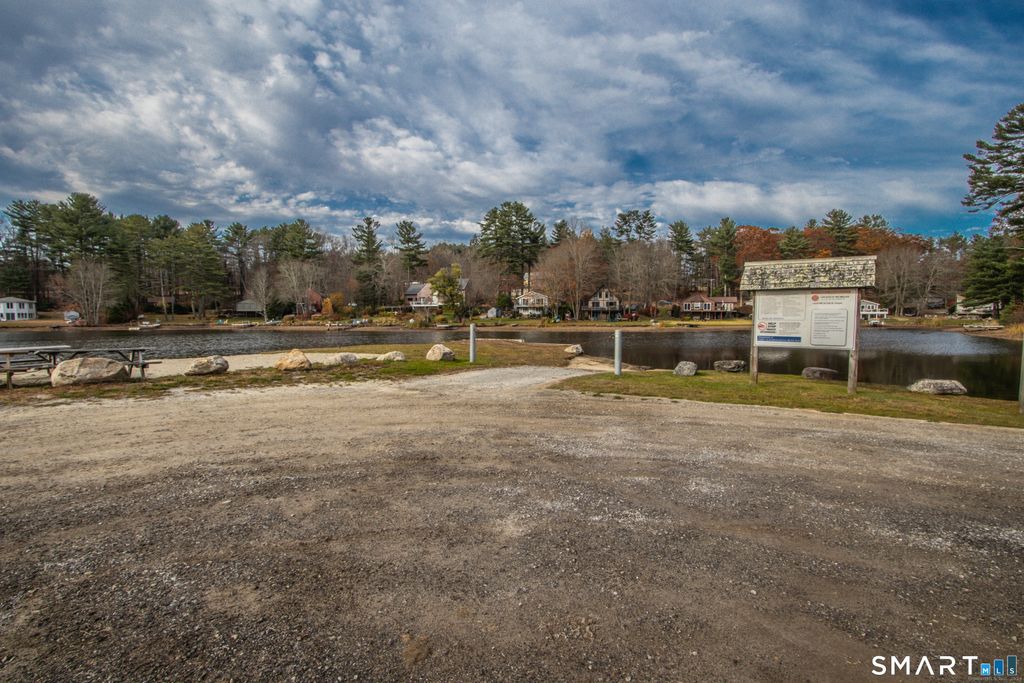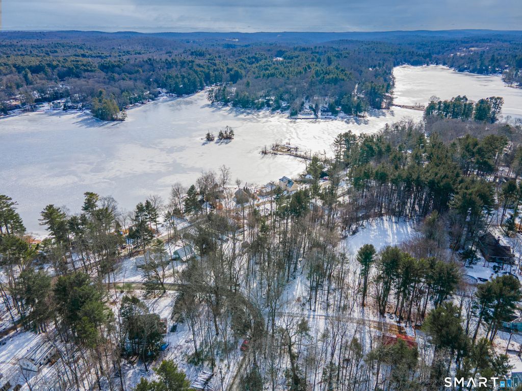 Enjoy lake views and coveted lake community rights from this beautifully updated home set on just under an acre of land. The open-concept main level features a sun-filled living room and kitchen with soaring cathedral ceilings, granite countertops, stainless steel appliances. The spacious primary suite offers a walk-in closet and a private full bath with double sinks. No matter the season enjoy central air and a cozy pellet stove-perfect for year-round comfort. Hardwood floors flow throughout the home, complemented by large windows that invite in natural light and showcase scenic surroundings. An additional main-floor room with washer and dryer hookups, currently used as a third bedroom, provides flexible living options. The finished lower level features radiant floor heating, adding valuable living space and warmth. Step outside to a stunning wrap-around cedar porch looking out towards the lake, ideal for relaxing or entertaining. Set yourself up to reap all the benefits of this versatile home that's just a short walk from the beach on Bungee Lake! The lake community enjoys a private beach area and boat ramp. A great place to appreciate doing all the things you love, whether it's boating, swimming, walking, or fishing on this fully recreational lake. A rare opportunity to enjoy lake living with modern updates in a desirable Connecticut lake community.