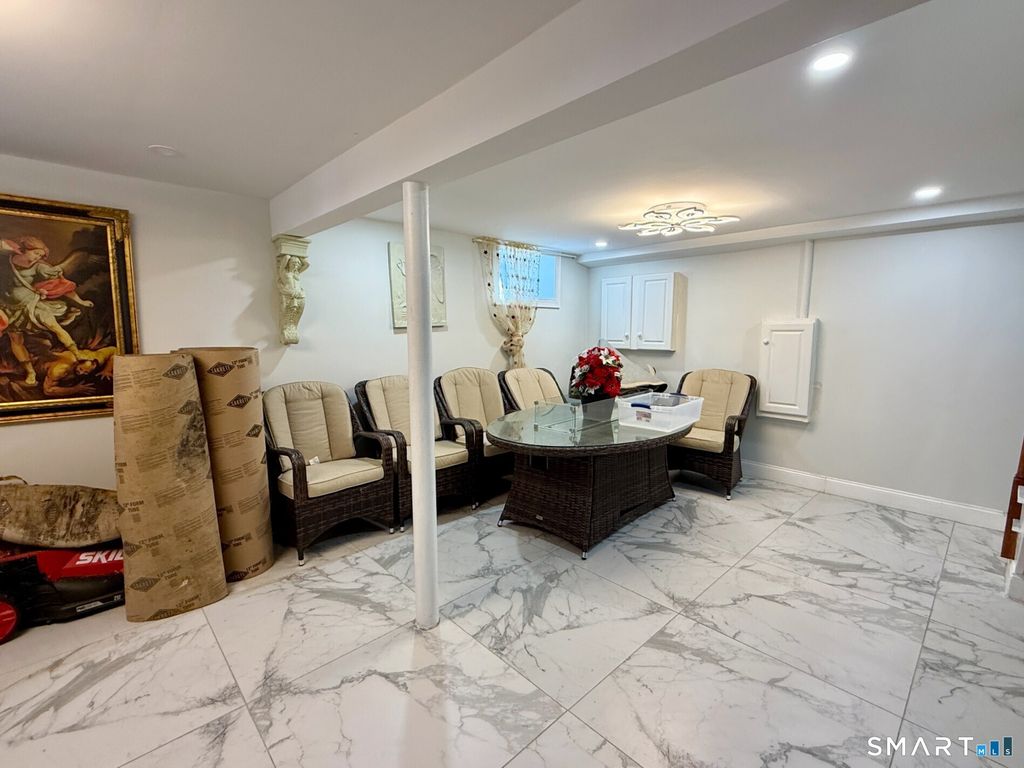 Completely Remodeled 4-Bedroom Cape on West Side of Torrington! Move right into this beautifully renovated 4-bedroom, 2.5-bath Cape set on a large, level yard in a desirable West Torrington location. The main level features a bright, open floor plan ideal for today's lifestyle. The stunning kitchen showcases granite countertops, stainless steel appliances, and a center island with breakfast bar, flowing seamlessly into the dining area. Also on the first floor are a spacious living room, a main-level bedroom, and a full bathroom featuring a custom tile shower with dual rainfall shower heads. Upstairs offers two additional bedrooms and a full bath with tub/shower combination. The finished walkout basement adds valuable living space with a large family room, fourth bedroom, laundry area, and half bath, with direct access to the backyard-perfect for entertaining or extended living. Additional highlights include energy-efficient gas heating and radiant heated tile floors in the basement for year-round comfort. Conveniently located just minutes from downtown Torrington shopping, dining, and amenities, with easy access to major routes-approximately 2.5 hours to NYC or Boston!