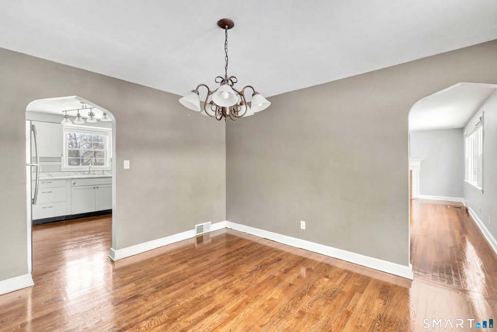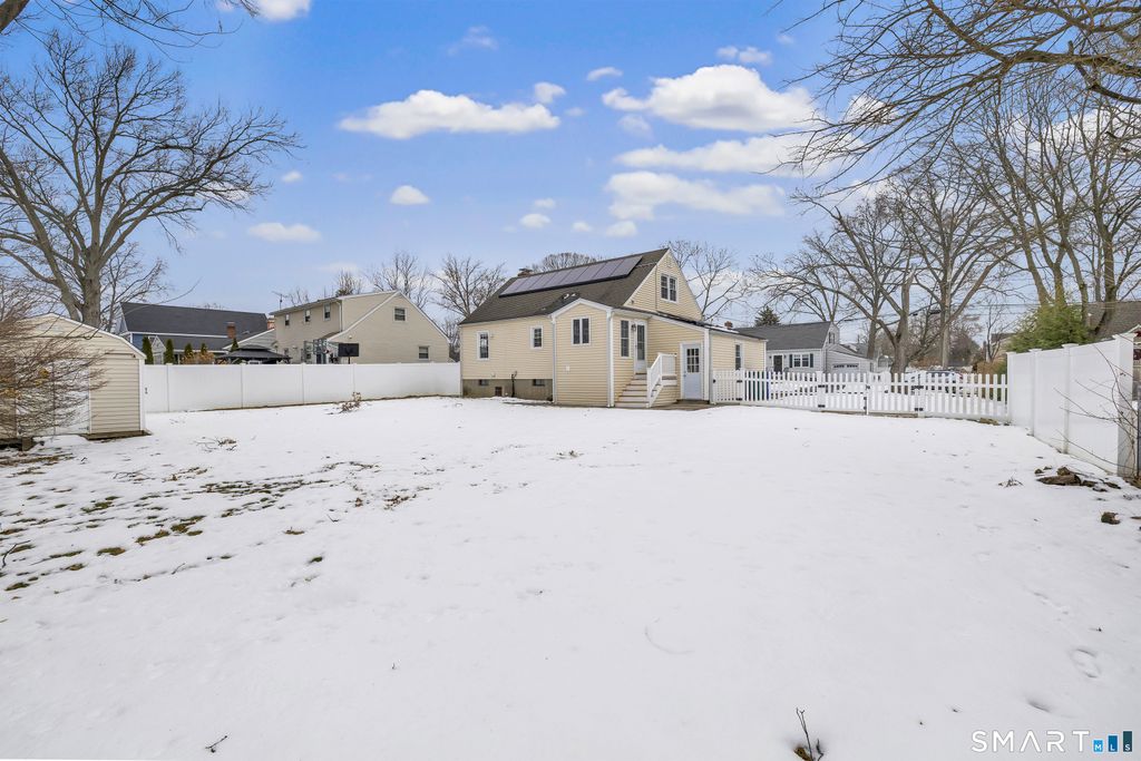Welcome to this charming Cape Cod home in Stratford that offers comfort, space, and great updates throughout. This well-maintained property features a newer natural gas furnace, central air, vinyl siding, and beautiful hardwood floors. The fully equipped kitchen includes newer white shaker cabinets and opens to a convenient mudroom with laundry, perfect for everyday living. The main level offers an inviting living room with fireplace, a formal dining room, a spacious kitchen, full bath, and a main-level bedroom. Upstairs you'll find two additional bedrooms - one primary with a walk-in closet and another great sized bedroom, ideal for family, guests, or home office space. The full unfinished basement provides excellent storage and future potential for added living space. Set on a level .21-acre lot, this home offers both usability and outdoor enjoyment. 200 amp electric offers plenty of room for future expansion. Security system in place! This is an estate sale, and the property is being sold as-is. Conveniently located near I-95 and just 1.5 miles to Metro-North, making commuting easy. A wonderful opportunity to own a solid, well-cared-for home in a great Stratford location close to shopping, dining, and parks. Solar conveys with the property. Offer deadline is Monday 1/12 4pm.
