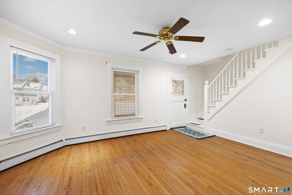 Welcome home to this inviting, freshly painted move in ready 3- bedroom, 1 & 1/2 bath Colonial on a level corner lot on the west side of Torrington. Highlights include a sweet covered front porch, hardwood floors & decorative original crown molding throughout, a spacious updated eat-in kitchen with a dining area, convenient main level laundry room & half bathroom with tiled flooring. The upper level offers three light-filled bedrooms along with a full bathroom and stairs leading to a walk-up attic, providing excellent storage space or potential to add an additional room. With replacement windows and a high efficiency Natural Gas heating system, this home offers comfort & energy efficiency year-round. The property also offers a 1 car detached garage and an excellent level backyard, ideal for outdoor entertaining, gardening and play! With a classic layout and easy living spaces, this home is ready for its new owner!