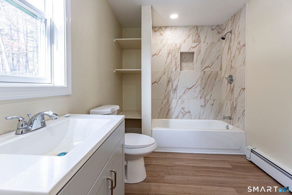 Lake Living at Its Finest - Staffordville Reservoir Experience the perfect blend of luxury, lifestyle, and location in this stunning Colonial overlooking the Staffordville Reservoir, complete with lake beach rights (approx. $250/year). Perched high on a hill, this three-level home offers breathtaking water views and the feel of brand-new construction, having been completely renovated inside and out. The main level features a bright, open-concept living and family room, a beautifully redesigned kitchen, a flexible third bedroom or home office, and a full bath with modern finishes. Upstairs, the primary suite is a true retreat with a spa-style bath, oversized closets, and private porch access with panoramic lake views. A second bedroom and full bath complete the upper level. The finished walk-out lower level adds exceptional versatility with a family room, laundry area, and potential for additional bedrooms. Outdoors, enjoy mature trees, a private patio with fire pit, and professionally installed paver walkways. Every major system is NEW-kitchen, baths, windows, doors, roof, boiler, water heater, siding, porches, plumbing, electrical, drywall, and parking area with retaining wall. Whether as a year-round residence or a weekend escape, this lakefront-adjacent gem is truly one of a kind. Schedule your private showing today-opportunities like this do not last.