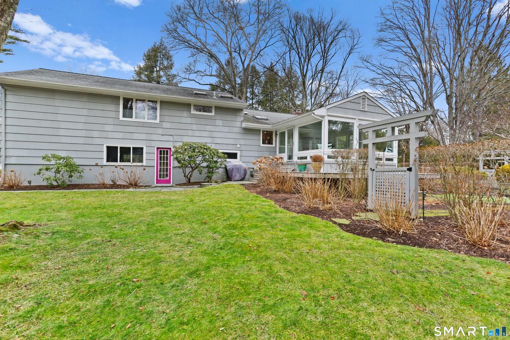 Welcome to this gracious, impeccably maintained home, perfectly situated on a serene, one-acre flat lot in a lovely neighborhood with no through traffic. Offering the ideal combination of comfort & convenience, this inviting residence features 3 bedrooms & 2.5 baths with a light-filled, open main level designed for everyday living & effortless entertaining. The spacious living room centers around a cozy fireplace, while the kitchen features clean-lined wood cabinetry, a functional island, & easy entry to a fabulous three-season porch-perfect for enjoying tranquil views of the landscaped gardens. The primary suite includes an en-suite bath with double sinks; skylights fill the bedroom with natural light. Two additional bedrooms flank a versatile sitting room that can serve as a library, office, or relaxation area. The lower level offers a generous family/playroom, laundry area, & a sunlit additional room ideal for a second office, art studio, or craft space. Direct access to the two-car garage adds everyday convenience, & the home's solid construction ensures lasting quality. Step outside to discover a beautifully maintained garden with blooming shrubs, a patio for lounging, & a spacious lawn for play. A whole-house generator provides peace of mind year-round. Located near Coleytown schools and just minutes from town, this property offers a private, walkable neighborhood with easy access to all of Westport's amenities. Don't miss the chance to see this charming home.