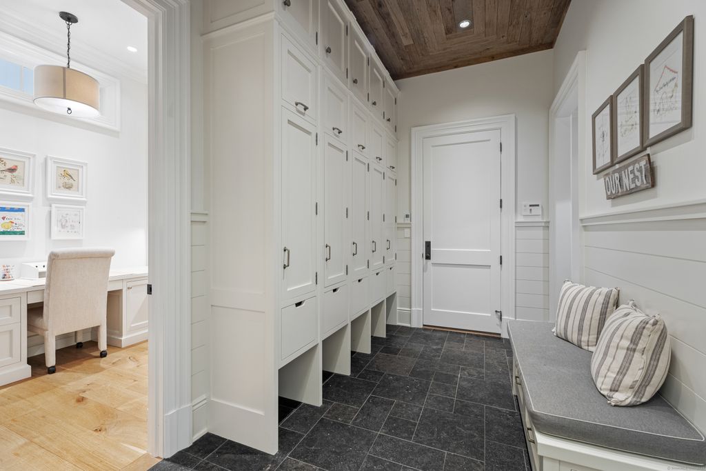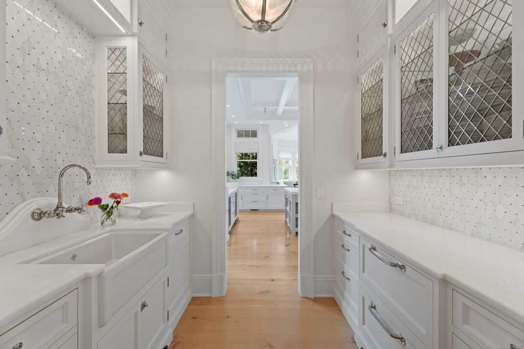 A rare offering, this Gambrel shingle-style estate is a sanctuary on over 6 acres on a cul-de-sac, offering a secluded retreat. Crafted with no expense spared, the residence features steel construction, geothermal energy, cedar roofing and siding, and copper gutters. Inside, an elevator connects all levels, while quarter sawn wide plank hardwood floors, custom window treatments and coffered ceilings elevate the space. At the heart of the home, a stunning marble kitchen outfitted with Subzero and Wolf appliances, a breakfast nook, and butler's pantry opens to a soaring two-story family room as well as formal dining and living rooms for effortless entertaining. A main level bedroom suite is ideal for guests. Two private offices and well appointed mudroom enhance everyday functionality, while four fireplaces add warmth to the home. Upstairs, a spectacular primary suite with balcony, and 3 additional ensuite bedrooms are accompanied by a spacious bonus room with adjoining craft room. Intricate millwork and custom built-ins enrich every inch of this special home, reflecting its master craftsmanship. Wraparound covered patios overlook the saltwater Gunite pool, while an outdoor kitchen and fire pit invites alfresco dining. Pool house with kitchenette, laundry, 2 baths, rec room with balcony is perfect for guests. Five garage bays for the car enthusiast. The property offers unmatched luxury. Quite simply, there is nothing else like it.