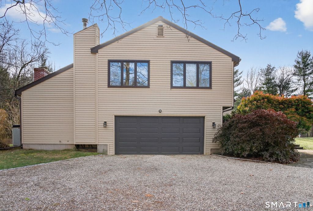 Custom-built contemporary split, designed and built by the seller in 1980, offering an open floor plan and exceptional indoor-outdoor living. The living and dining rooms feature warm Acacia wood floors, while the granite and stainless kitchen includes an island, eat-in space, and sliders leading to multiple decks-both covered and open-ideal for entertaining or relaxing outdoors. The kitchen flows seamlessly into the family room with a dramatic cathedral ceiling, skylights, and a large gas fireplace, creating a bright and inviting gathering space. Set on a private lot with the Farmington Canal Heritage Trail just beyond the backyard fence-perfect for biking, walking, running, cross-country skiing, or snowshoeing. Solar panels are leased. A unique home in a highly desirable Avon neighborhood offering space, character, and direct access to one of the area's most loved trails.