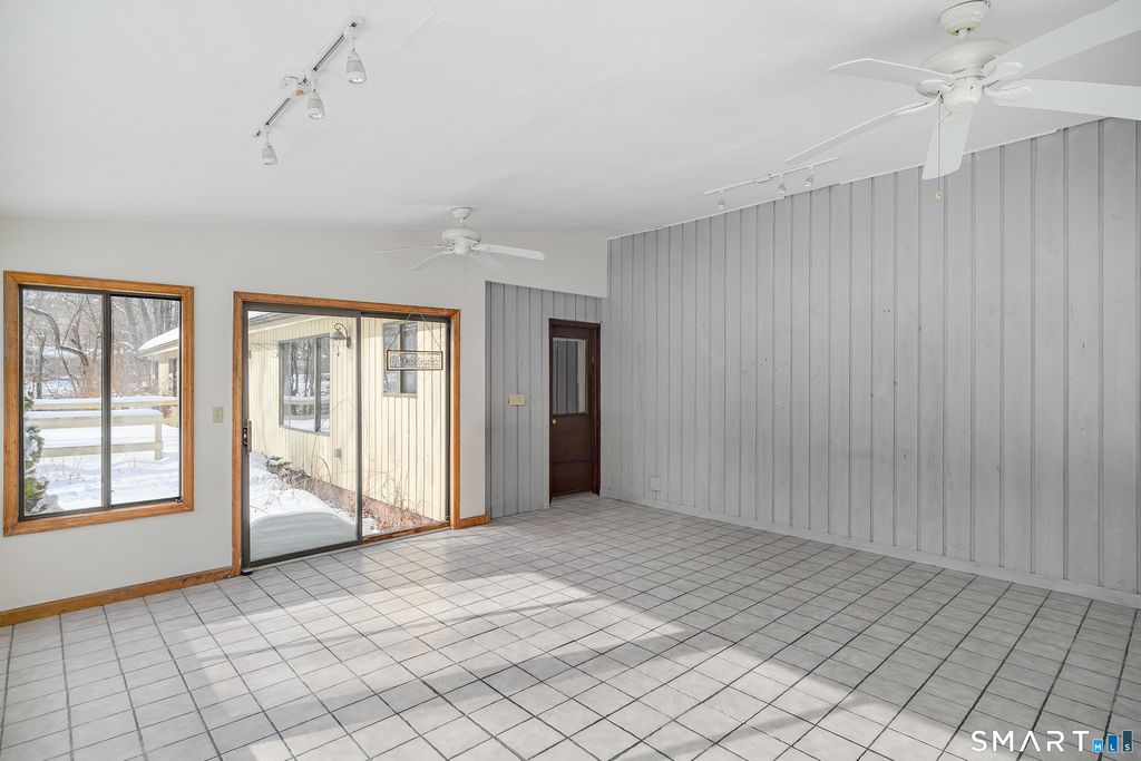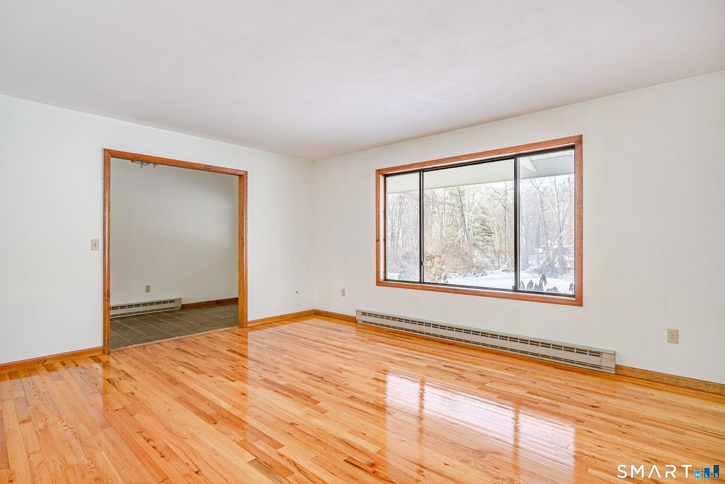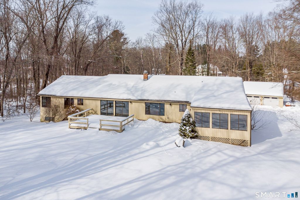 Nature lives here........ A tree lined driveway nestled in the woods leads to a setting making you feel like you are a world away. Step inside to this sun drenched sprawling ranch offering privacy yet convenient to everything. The welcoming foyer leads to a spacious well lit living room and formal dining room grounded by gleaming hardwood floors. The dramatic family room crowned by a soaring ceiling along with 2 skylights making winter nights cozy when sitting next to the warm wood stove. Step through 2 sets of sliders to an oversized deck perfect for barbecues and stargazing. Don't miss the oversized sunroom with perimeter windows overlooking views of the level backyard. Car lovers will appreciate the additional 2 car detached garage also ideal for storage. Need more space? Bring your imagination to the lower level which can be finished giving you more room. Brand new roof January 2026. Only a few minutes to the sought after quaint village of Bethel known for its historic PT Barnum Square, award winning Dr. Mikes ice cream, restaurants, coffee shops, Bethel train station, boutique shopping ,and more. Only a quick trip to Target & I-84. Excellent Lower Fairfield County commute. Peaceful tranquility awaits you.
