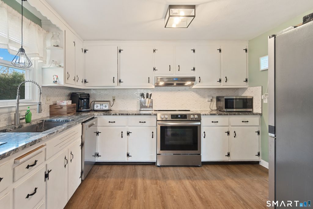 Great move-in ready home located in a convenient Plainville neighborhood. It offers a kitchen, Livingroom with FP and built-ins, Dining Room, 4 bedrooms and 2 full bathrooms, one with a large jacuzzi tub. The 4th bedroom has a private entrance and a full bath, ideal for home office, guest suite or studio. Main living area with Luxury vinyl flooring, and hardwood floors in all bedrooms. Step outside to find a level, fenced in rear yard with a patio with trellis with a mature Wisteria vine. Just minutes to the Farmington Line, Paderewski Park, the YMCA, Restaurants and Shopping!