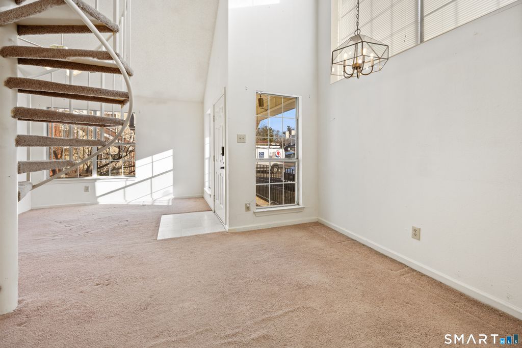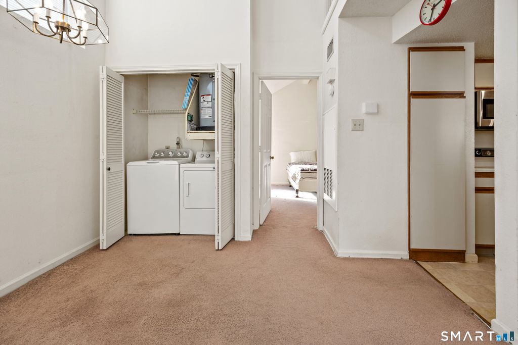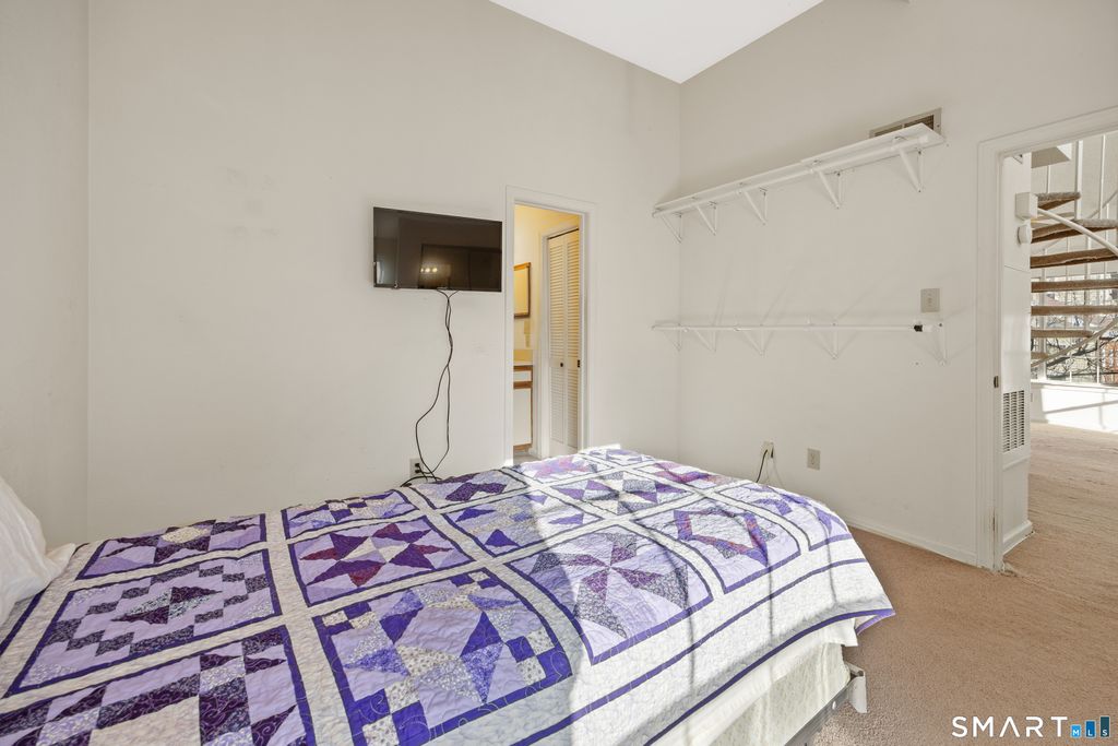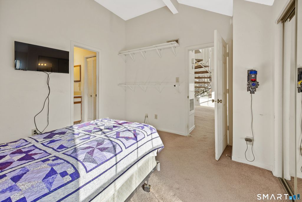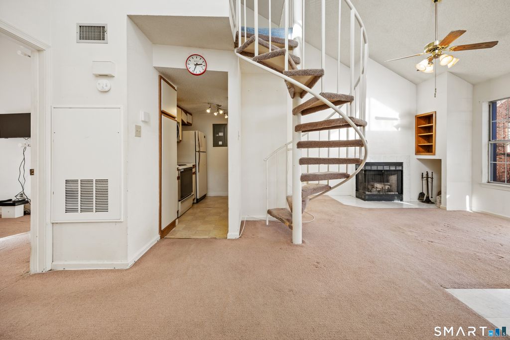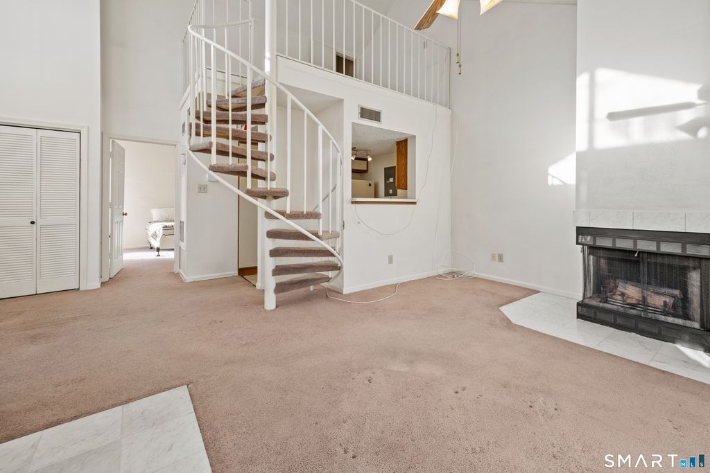 Welcome to this ranch style condo in the vibrant Carriage Crossing Complex where modern comfort meets resort-style living! This unit is in a super convenient secluded location on the second floor, steps to parking right out front! This bright 1 bedroom, 1 bath end unit with loft features an open floor plan with a sun filled living room highlighted by soaring vaulted ceilings, oversized windows, and a cozy fireplace with marble flooring around it. The galley kitchen offers efficient functionality, while in unit laundry adds everyday convenience. The spacious bedroom includes vaulted ceilings and direct access to the full bath, creating a comfortable private retreat. A bonus loft area provides flexible space ideal for a home office or reading nook. Recent updates include a new heat pump (2021), new roof (2024), and new exterior railings (2025). Enjoy the exceptional resort style amenities of the Carriage Crossing community: outdoor pool, hot tub, fitness center, tennis, pickle ball and racquetball courts. Scenic walking trails, nearby shops and restaurants, and easy access to Route 9, the Merritt Parkway, and I-91 complete this amenity-rich lifestyle. This stylish condo truly blends modern living, convenience, and amenity rich comfort and inviting retreat you won't want to miss!