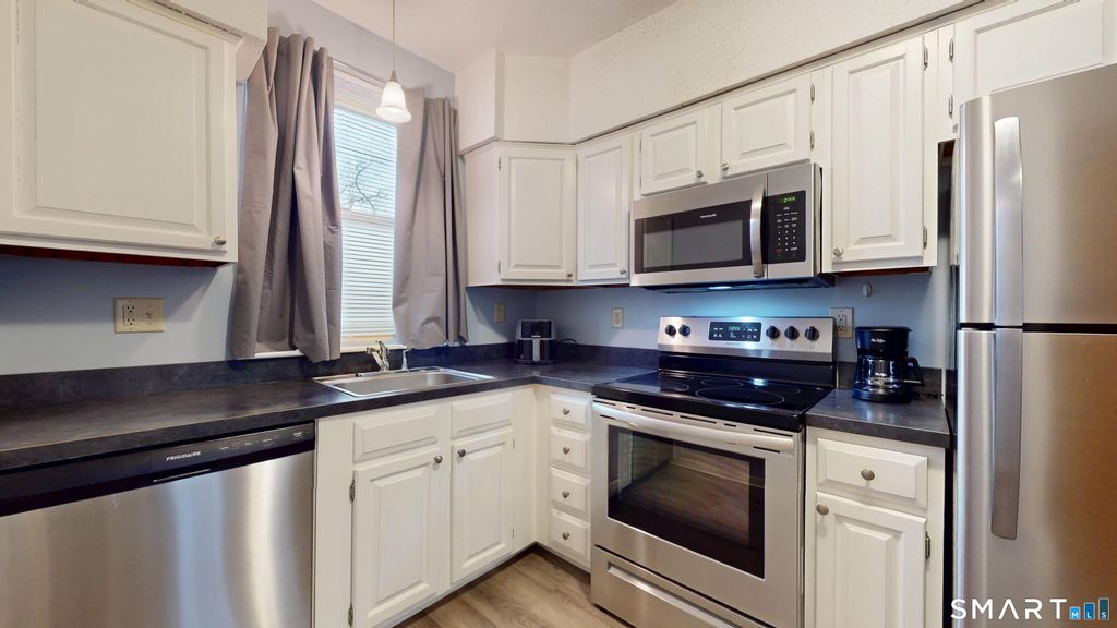 Come have a look at this stylish, move-in-ready ranch condo set in a well-maintained and classic brick building accented by vintage wrought-iron fencing. This updated unit features a modern kitchen with stainless steel appliances and an open layout that connects seamlessly to the living area-ideal for both everyday living and entertaining. The full bath has been tastefully renovated with a tub/shower combo. Additional highlights include soaring 8-foot ceilings, fresh neutral paint, durable vinyl flooring throughout, replacement vinyl windows, and efficient gas heating. A newer ( 2021) gas hot water tank is located near the private storage area, with shared laundry available in the basement. Assigned parking space #18. Convenient location walkable to St. Francis Hospital, close to downtown Hartford and just minutes to West Hartford Center. A great opportunity for owner or investor that you won't want to miss.