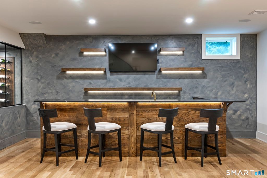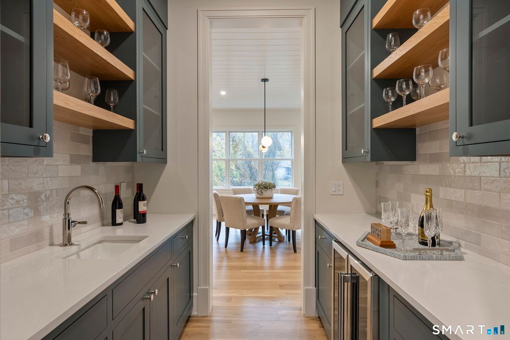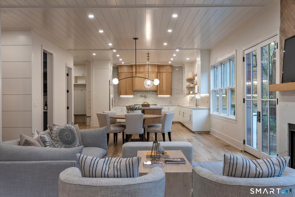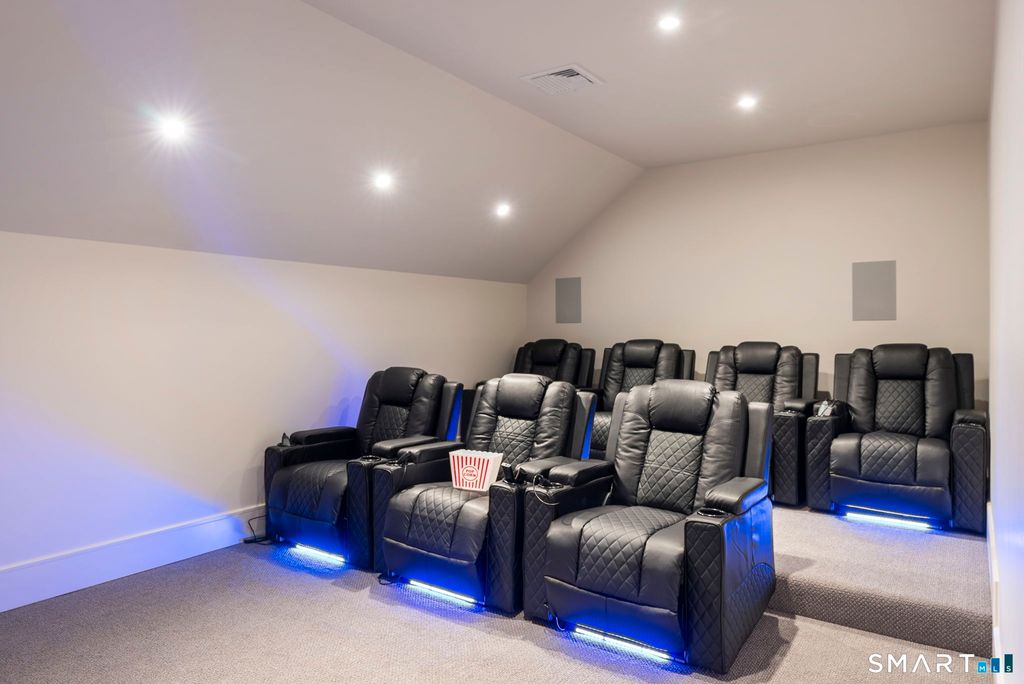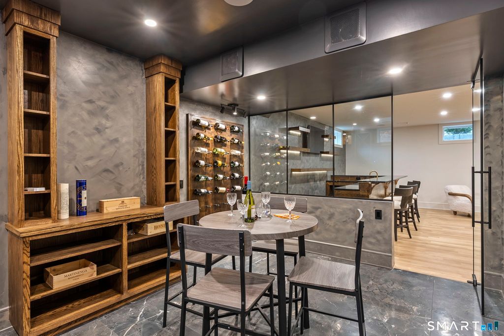 Now fully complete, this newly built residence in Greens Farms offers a rare blend of architectural presence, modern comfort, and understated luxury. Crafted by a seasoned Westport builder with a fresh perspective, the home delivers a level of finish and warmth that distinguishes it from typical new construction. The outdoor experience is now fully realized with a custom gunite pool and over $150,000 of additional landscaping, creating a private, resort-style setting designed for everyday enjoyment and entertaining. Inside, a chef's kitchen anchors the main level with bespoke cabinetry, professional appliances, and a generous island that naturally brings people together. Open dining and family spaces flow seamlessly, complemented by a private library and an oversized three-car garage designed for the car enthusiast. The primary suite is a serene retreat with sitting area, spa-inspired bath, and custom dressing room, joined by four additional en-suite bedrooms and second-floor laundry. The third floor offers a full movie theater, office, and game area, while the finished lower level features a climate-controlled wine room, sauna, gym, and secondary prep kitchen with full-size refrigerator and freezer ideal for hosting or extended stays. Bluetooth audio, designer lighting, integrated TVs, and three fireplaces enhance the home throughout. Minutes to train to NYC, Compo Beach, Westport's best amenities, this move-in-ready home represents exceptional value at this price.