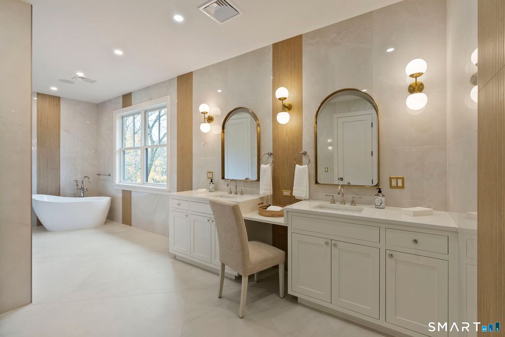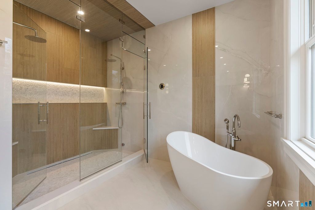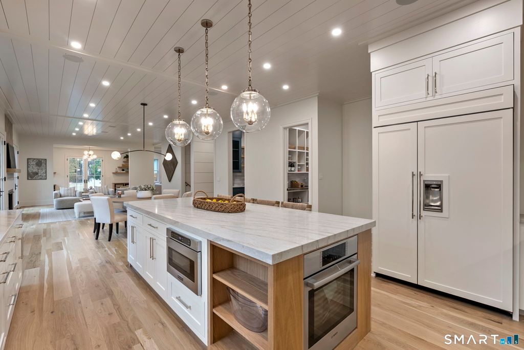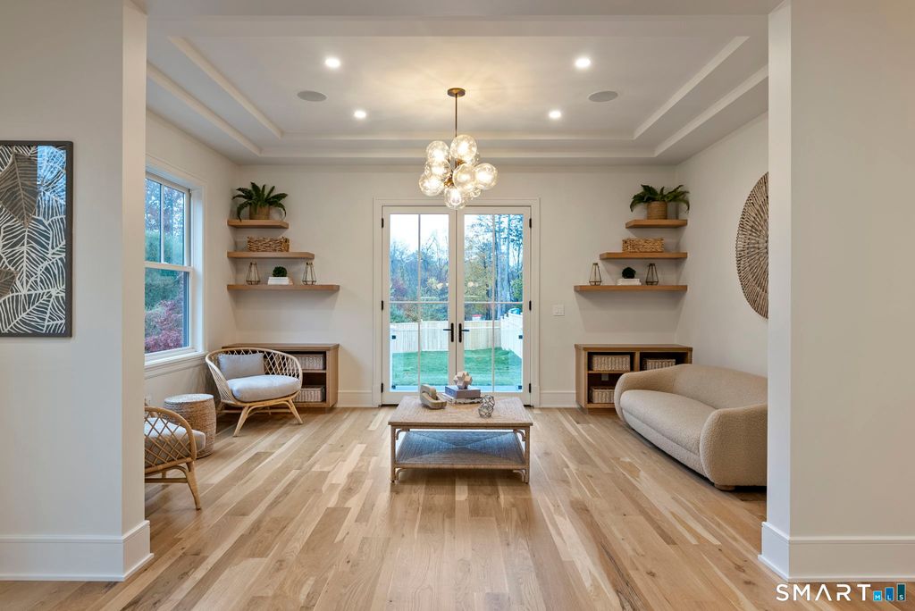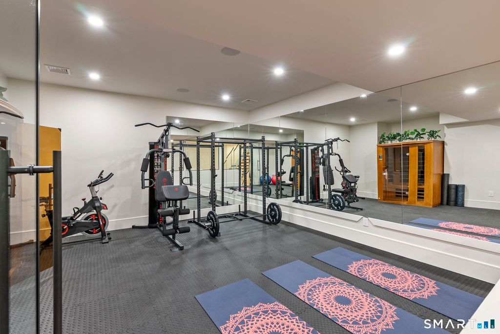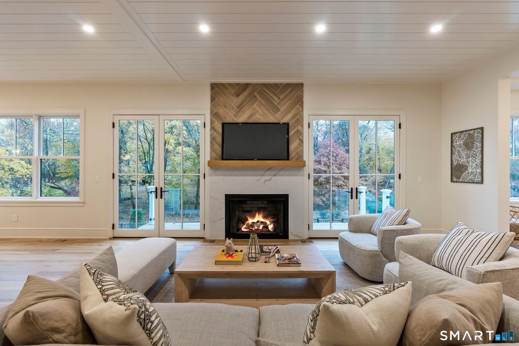Now fully complete, this newly built residence in Greens Farms offers a rare blend of architectural presence, modern comfort, and understated luxury. Crafted by a seasoned Westport builder with a fresh perspective, the home delivers a level of finish and warmth that distinguishes it from typical new construction. The outdoor experience is now fully realized with a custom gunite pool and over $150,000 of additional landscaping, creating a private, resort-style setting designed for everyday enjoyment and entertaining. Inside, a chef's kitchen anchors the main level with bespoke cabinetry, professional appliances, and a generous island that naturally brings people together. Open dining and family spaces flow seamlessly, complemented by a private library and an oversized three-car garage designed for the car enthusiast. The primary suite is a serene retreat with sitting area, spa-inspired bath, and custom dressing room, joined by four additional en-suite bedrooms and second-floor laundry. The third floor offers a full movie theater, office, and game area, while the finished lower level features a climate-controlled wine room, sauna, gym, and secondary prep kitchen with full-size refrigerator and freezer ideal for hosting or extended stays. Bluetooth audio, designer lighting, integrated TVs, and three fireplaces enhance the home throughout. Minutes to train to NYC, Compo Beach, Westport's best amenities, this move-in-ready home represents exceptional value at this price.