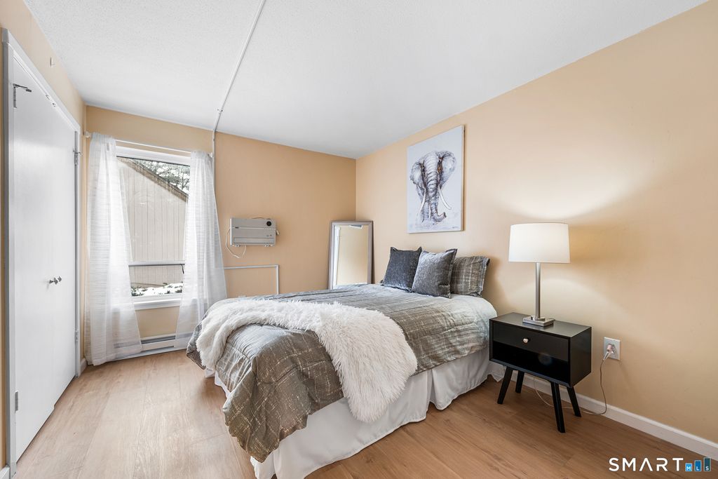 The ideal blend of value and move in readiness intersect at this stunning 1st fl, one level condo in Farmington Woods! With an ideal location and coveted amenities including multiple pools, sports courts, walking trails, 18 hole golf course, & a full service restaurant / clubhouse onsite, residents enjoy a resort-like lifestyle in an impeccably maintained setting. All of the heavy lifting has been done: fresh paint throughout, new flooring, new bathroom fixtures & vanities, & a BRAND NEW KITCHEN! Enter to a sunplashed open floorplan with an ideal layout for both relaxing & home and entertaining! Oversized windows in all the right places allow you to take in the verdant fairway views. The spacious living room can swallow your largest/most comfortable furniture and has seamless flow to a private patio ideal for grilling & al fresco dining. Large dining area easily can accommodate seating for 6+. Remodeled kitchen features new cabinetry and countertops, and new S/S appliances & there's additional space for more storage or a cheery breakfast nook. The massive primary suite has exceptional closet space and a completely updated ensuite bath. Spare BR with double closet and another full, renovated bath round out this stellar, approachable floorplan. Excellent storage throughout + easy access to a full-sized garage stall. W/D in unit, AC. Enjoy myriad retail & dining destinations, access to outdoor recreation, and the best of the Farmington Valley at your fingertips! You're HOME!