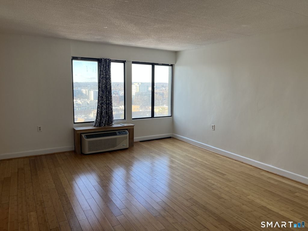 Top floor end unit, 2 bedroom and 2 full baths. Renovated kitchen with granite counters and breakfast bar. Spacious living room with dining area with hardwood floors. Rent INCLUDES electric and heat and hot water. Coin-op laundry and exercise room in lower level, assigned indoor parking space, 24 hour concierge. Walk to downtown restaurants, shops, library, mall and close to 95. Less than an hour commute to NYC.