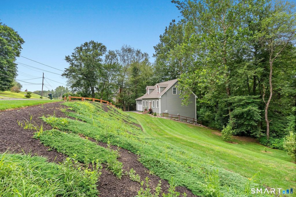 Built in 2018, this beautifully maintained 3-bed, 2.5-bath Cape offers modern comfort and smart-home upgrades at a quiet cul-de-sac location. The main level features a welcoming entry and an open kitchen with granite counters, new high-end appliances, and an island perfect for casual dining. A sliding door leads to the private Trex deck-ideal for grilling, entertaining, or relaxing in the new hot tub. The first-floor primary suite includes double closets (including a large walk-in) and a full bath with dual sinks. Upstairs, a bright loft provides great space for an office or rec room, along with two additional bedrooms, a full bath, and convenient laundry. The walk-out lower level is partially finished and offers 10' ceilings, large windows, and an at-home gym setup. Could also be a great movie/rec room. A 2-car garage, central air, and newly installed smart-home features including lighting, switches, locks, temperature sensors, and other security components add convenience and efficiency. This home offers an exceptionally convenient location, with quick access to Bradley International Airport for easy travel to domestic and international destinations, as well as close proximity to major highways, shopping, and local amenities. Furnished, move-in ready home with thoughtful updates.