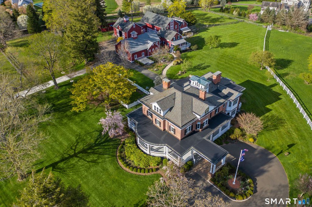 The "Legacy Estate" An Oenoke Ridge Masterpiece: The main brick residence captures the essence of Gilded Age elegance with 10-12 ft ceilings, eight fireplaces, a classic wrap-around-porch, and a porte-cochere. Spanning four finished levels, the main residence seamlessly blends original character with a significant three-story addition completed in 2012. The newer wing features a spacious Smallbone gourmet kitchen, sun-drenched breakfast room, large working pantry, 2-sided fireplace, large center island fit for a master chef and an adjacent family room all designed for casual living and effortless entertaining. The main residence includes a luxurious owner suite with fireplace, balcony, marble bath and 2 walk-in-closets. There are six additional bedrooms on the upper levels. The home is rich with architectural character throughout. The property also includes: - Three Historic Barns: Versatile spaces for collectors, animal lovers, gardeners or car enthusiasts. Grounds: Set high on the ridge, 4 pastoral acres with an identified pool site, multiple gardens, and rolling lawns. Own a piece of New Canaan history on Oenoke Ridge.