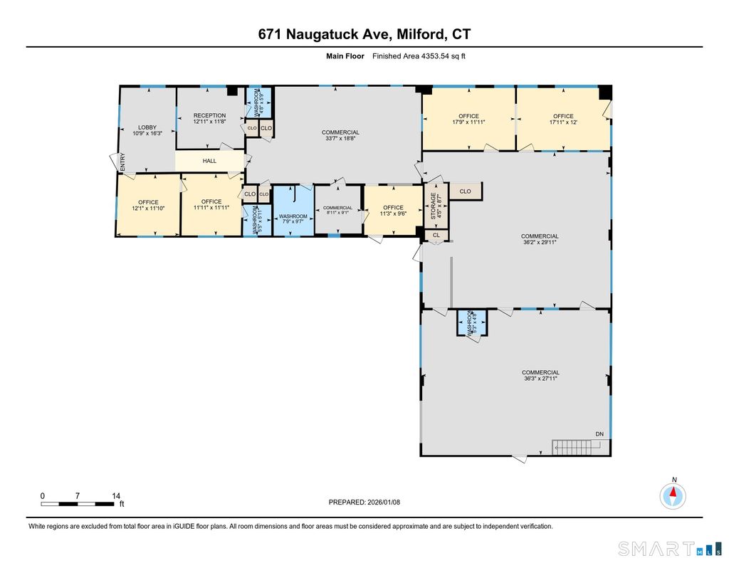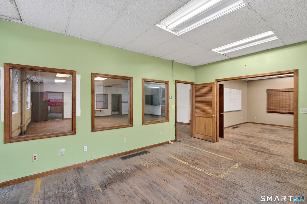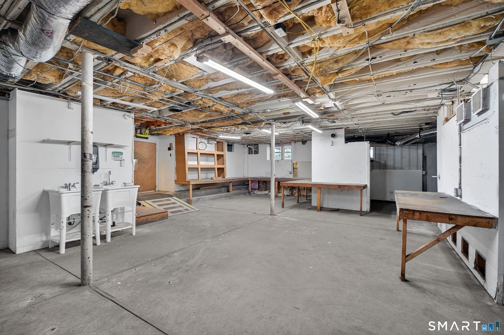 Convenient and well located commercial building plus the adjacent .29 acre lot, located in Milford close to the Stratford line with easy highway access. The space offers approximately 4,000+ SQ FT on the main level with a lobby, 6 built out offices, 3 half baths, a loading dock and warehouse space with peak ceiling height of ~15 ft. The finished lower level has an additional 2,156 SQ FT of usable space with 2 additional half baths and an overhead door. The property also has a huge unfinished portion of the basement - perfect for storage. All public connected utilities with newer gas furnaces. The building is zoned light industrial and sited on a large .43 acre lot (with additional lot included). Ample off street parking, and a fenced in yard for storage of trucks or supplies. The property and adjacent lot are being sold together as a package. This property has endless potential!