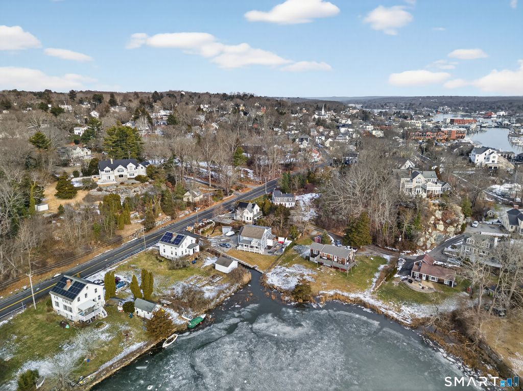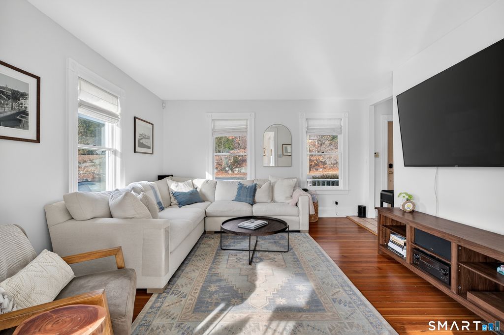Live the Mystic coastal lifestyle in this historic coastal cottage just minutes from downtown shops, dining, marinas, and waterfront. Built in 1910, this home blends classic seaside character with thoughtful modern upgrades. Features include a welcoming front porch, period details, spacious kitchen with pantry, and a sunny dining area. Upstairs offers three bedrooms and a full bath, with seasonal water views from select rooms and balcony access. Energy-efficient improvements include solar panels, heat pump, central air, EV charger, Generator, and Energy Star appliances. Private, landscaped yard with decks, hot tub, and outdoor shower-ideal for relaxing or entertaining. An ideal opportunity for year-round living or weekend retreat in one of Mystic's most desirable locations.