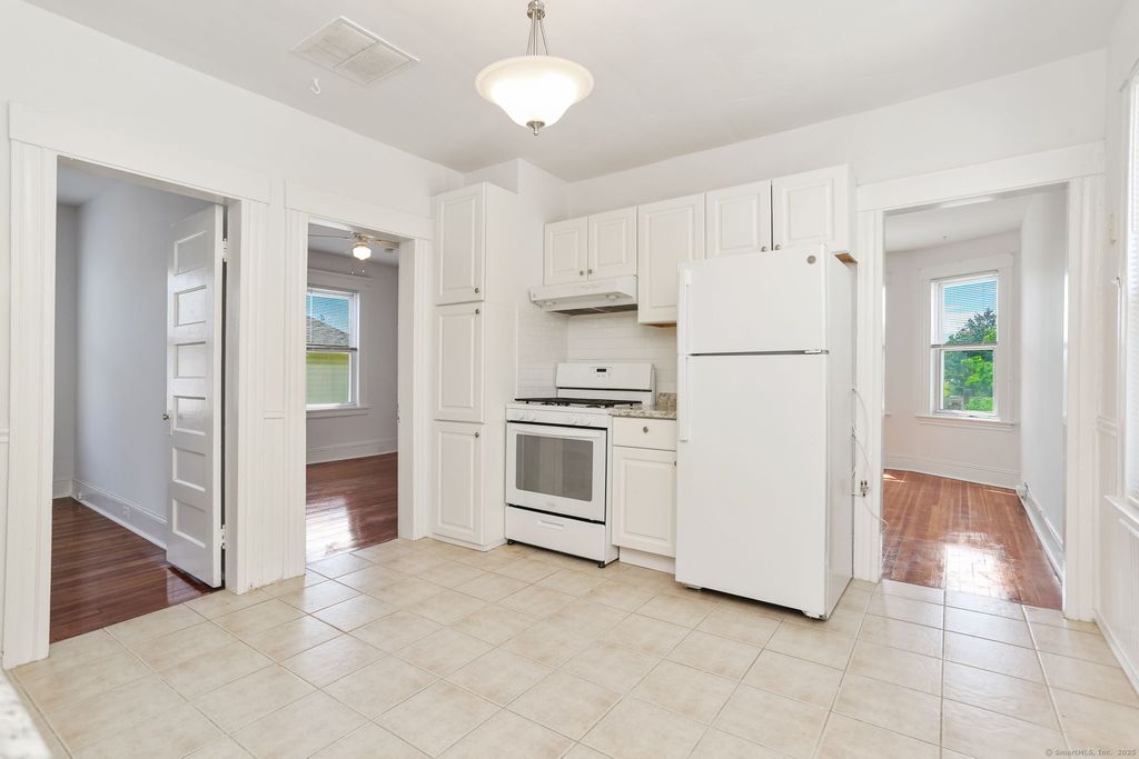 Charming, spacious, and beautifully remoded! Light-filled open rooms with tall windows and gleaming hardwood floors create a warm and inviting feel. The spacious kitchen features a walk-in pantry, wainscoting, granite counters, and tile floor. The sunny living room with bay window flows nicely into two generously sized bedrooms with hardwood floors. Enjoy the newly remodeled bathroom, complete with a brand-new vanity and a stylish shower finished with classic subway tile. Additional highlights include Thermopane windows, all new blinds, and nothing to do but move right in! Relax on your own private covered porch or in the great yard-perfect for a BBQ. All this in a neighborhood setting, ideally located close to train, town , shopping, and great restaurants in both Black Rocj AND Fairfield. Just minutes to Fairfield's beautiful beaches! This is a 3rd floor unit and includes one off street parking spot. Requirements: Good credit, income verification, and references.