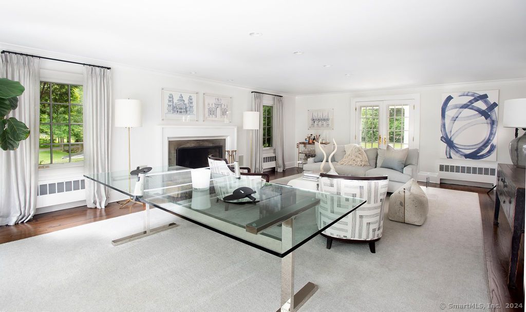 474 Brookside Road is a rare, turnkey Connecticut estate-an elegant 1938 home set on 2.75 private acres, transformed through thoughtful, high-end updates into a luxury retreat. Classic architectural character meets modern scale, light, and lifestyle. Inside, the home is defined by warmth and sophistication with a sense of history and comfort. Sunlight moves from room to room across perfectly proportioned spaces, designer finishes, and timeless millwork. The updated kitchen opens to an inviting family room-an everyday gathering space. The living room transitions from the family room with French doors that spill out to the terraces-one with a corner firepit. The serene primary suite offers a newly finished spa bath, radiant light, and tree-top views. The entertainment "barn" provides an architectural art form of custom cut stone floor with radiant heat, peaked ceilings, barn doors, and wide-plank floors. The upstairs offers a gym, office space and bedroom--ideal for modern living. In summer, the property becomes a private resort. The heated pool, custom,