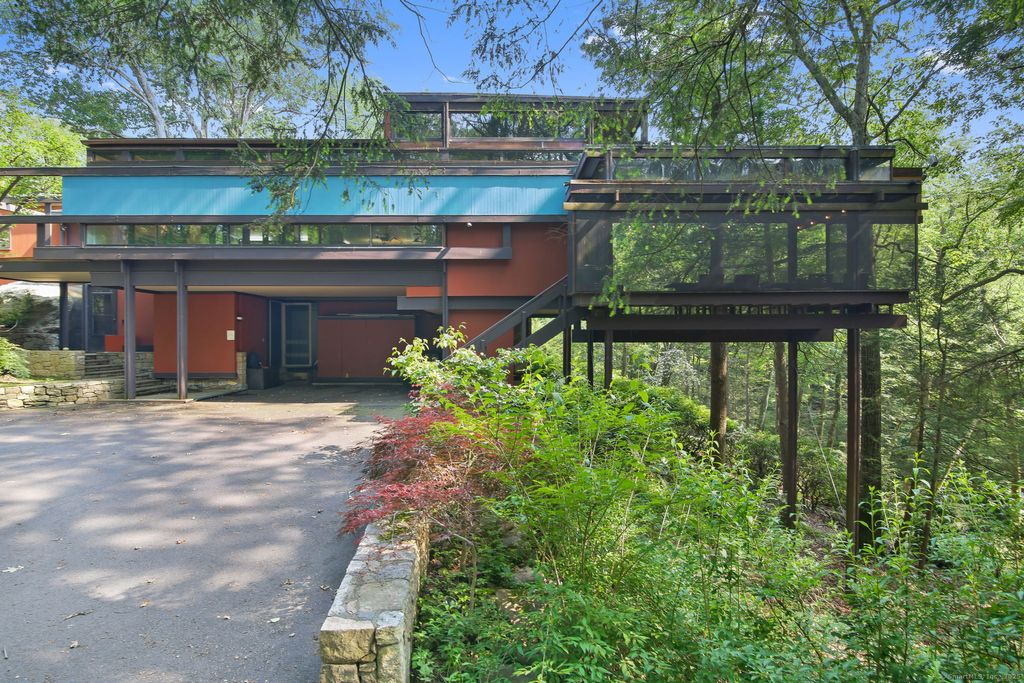Amazing summer rental with pool! Serenity awaits you on coveted back-country cul-de-sac in this private, park-like setting rich with mature plantings and natural beauty. A unique, idyllic entrance leads you to the peaceful banks of the Byram River. This architecturally significant home features a dramatic expansion by mid-century modern architect Paul Rudolph. The open layout offers a stunning living room and screened porch with breathtaking views. Primary suite with large dressing room and bathroom. Two additional bedrooms with en-suite bathrooms complete the home.