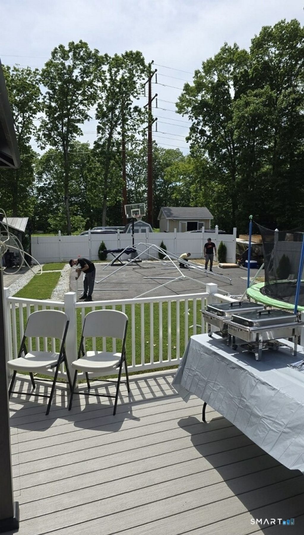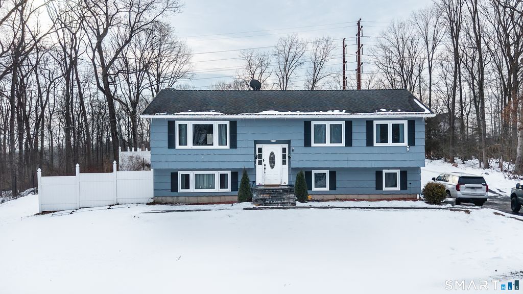 Bright and airy raised ranch located in the desirable White Hills section of Shelton, set on over one acre of land. This home features an open floor plan and a recently remodeled kitchen with wall-to-wall gray cabinetry, a spacious island, quartz countertops, stainless steel appliances, and unique modern light fixtures. The dining room includes sliders leading to a deck overlooking the ultimate backyard retreat. Outdoor features include an inground heated pool with LED lighting, jacuzzi, stone pathways, and two gazebos-perfect for entertaining. The expanded driveway is fully paved to the top, offering parking for at least eight vehicles and includes a section ideal for a basketball court. Interior highlights include an extended primary bedroom with a half bath, two full bathrooms, a large family room with fireplace, two to three additional rooms on the lower level, all newer windows and a designated laundry area. Additional features, include two split systems (one in the living room) and a large, fully finished and insulated she-shed with its own split system. A rare opportunity combining privacy, space, and resort-style amenities.