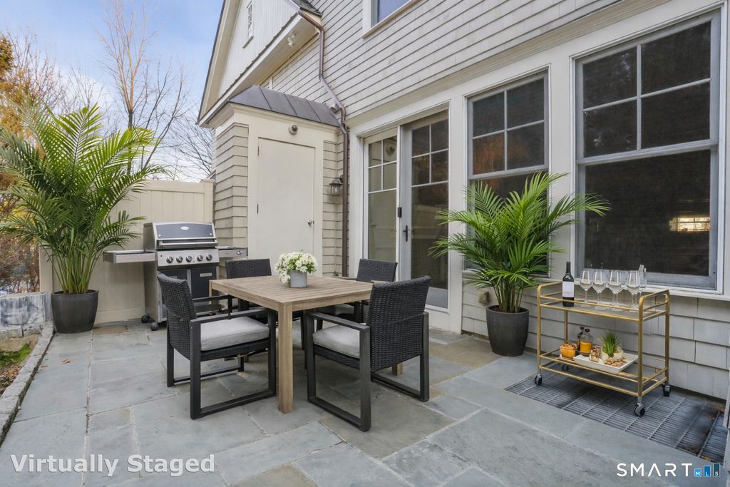Luxury Townhouse in Prime Greenwich Location ~Just 1.5 blocks from the Greenwich Train Sta. & world-class shopping & dining of Greenwich Ave. This stunning & sophisticated 3-BR, 4-bath townhouse condo is quietly nestled behind a charming, tree-lined sidewalk in one of Greenwich's most sought-after locations. Designed by renowned architect Rich Granoff & masterfully built by Thomas Torelli, this residence showcases 10' ceilings, exquisite millwork, intricate moldings & exceptional high-end craftsmanship throughout. The spectacular chef's kitchen, redesigned in 2018 by Putnam Designs, is a true showpiece, featuring Neolith countertops, full-access custom cabinetry w soft-close drawers & hinges, a Rohl fireclay sink, top-of-the-line Viking & Miele appliances, executed w remarkable attention to detail. Offering 3 levels of light-filled living space, the home features a gracious open-concept main floor highlighted by a beautiful gas fireplace & French doors that open to a serene bluestone patio, ideal for entertaining/quiet relaxation. A flexible floor plan provides multiple options for a home office, media room, gym, playroom, or bonus space. Other highlights include Restoration Hardware lighting & custom window treatments throughout, a luxurious primary suite w soaring ceilings, chandelier, spa-like bath w jacuzzi tub, separate walk-in shower, and his/her closets w custom built-ins. A convenient motorized dumbwaiter connects lower level to kitchen. Attached garage +guest pkng.