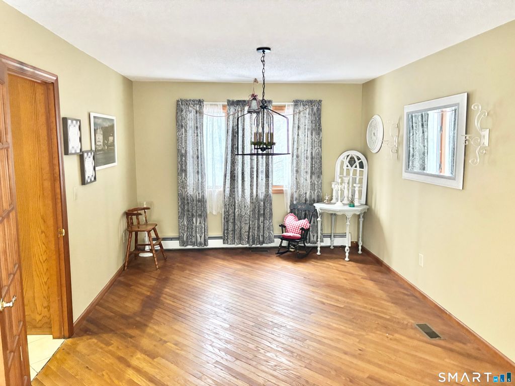Welcome to this inviting ranch-style home offering a smart layout, great natural light, and the kind of everyday functionality buyers love. A spacious twocar garage provides plenty of room for vehicles, storage, or hobbies, and leads directly into the heart of the home. Inside, the eatin kitchen serves as a comfortable gathering spot for casual meals and conversation, with easy flow into the main living areas. The family room, anchored by a cozy fireplace, creates the perfect backdrop for relaxing evenings or hosting friends. All bedrooms are thoughtfully located on the upper level, offering privacy and separation from the main living spaces. Each bedroom features beautiful hardwood floors, adding warmth, character, and easy maintenance. This home blends classic charm with practical living, making it a wonderful opportunity for anyone seeking comfort, convenience, and room to grow. Please Note: Property has Pyrrhotite (Crumbling Foundation).